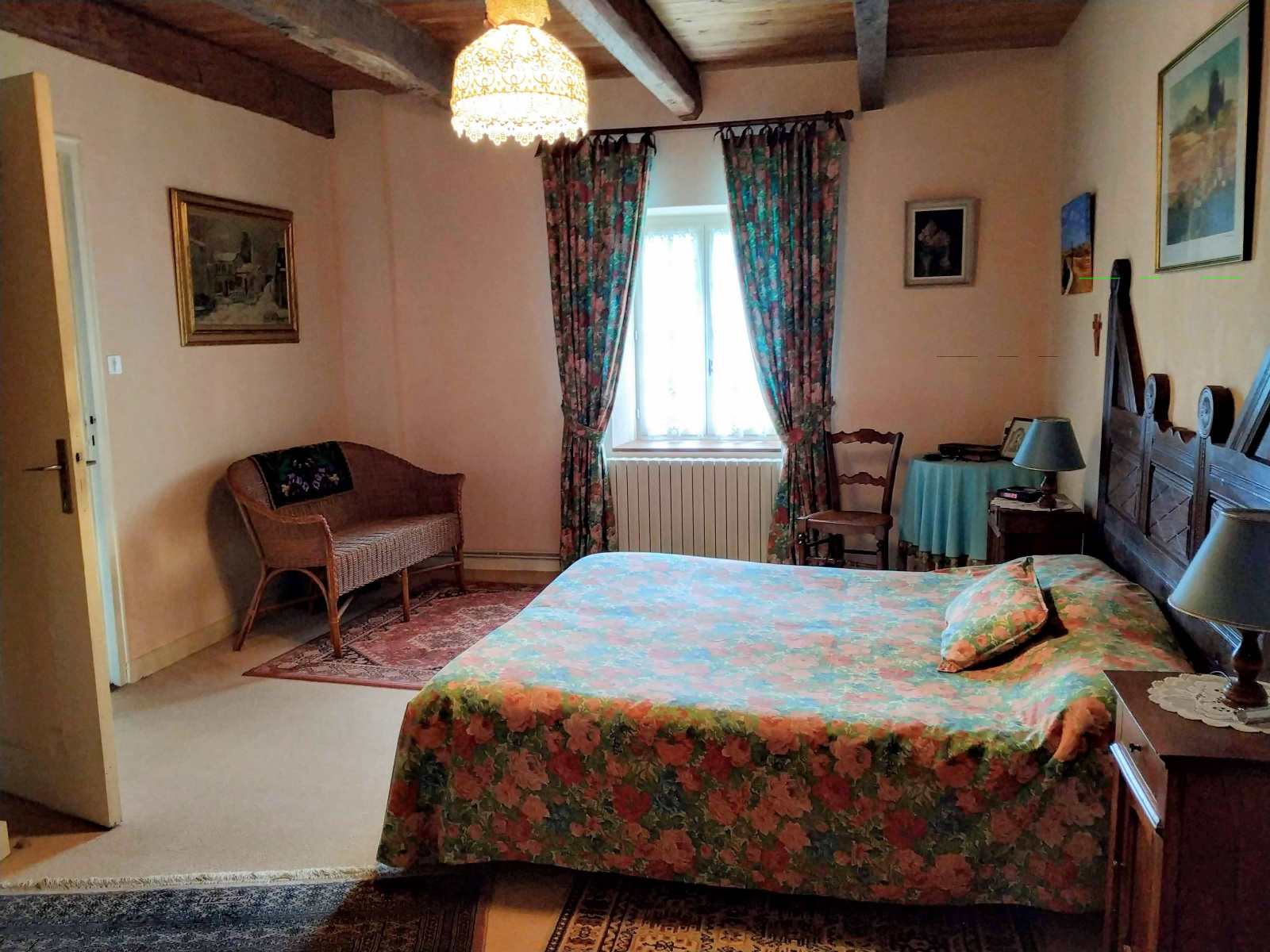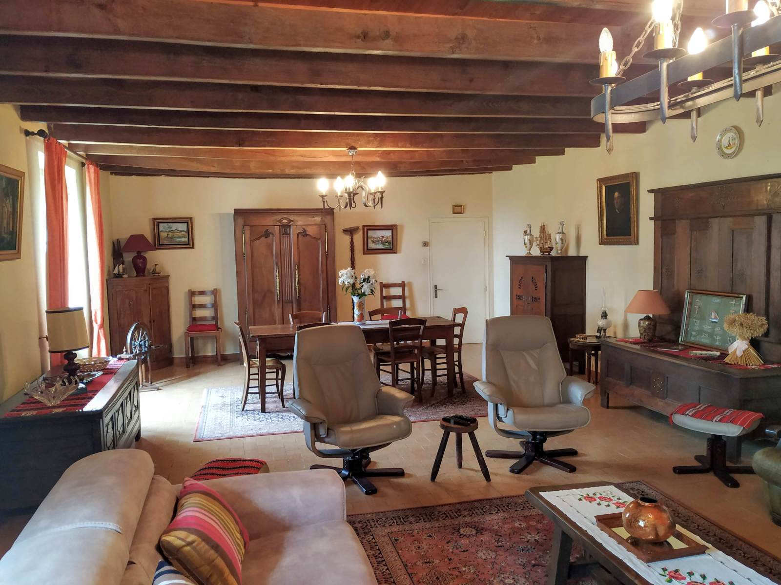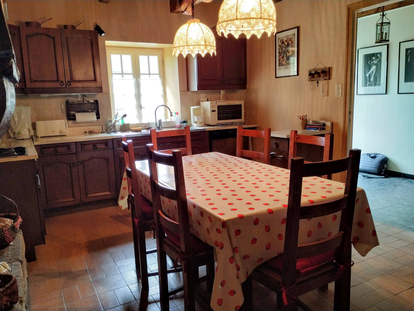Exposé SUD, avec un accès immédiat au jardin. Cheminée à foyer ouvert.