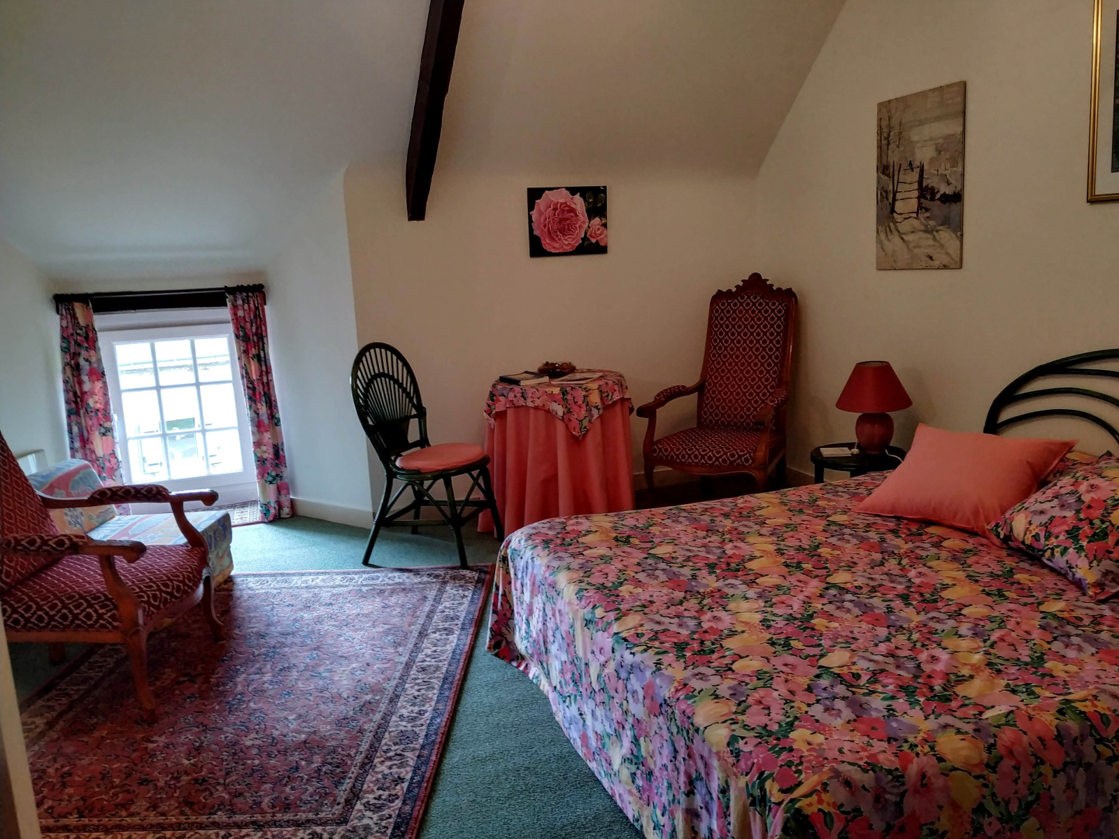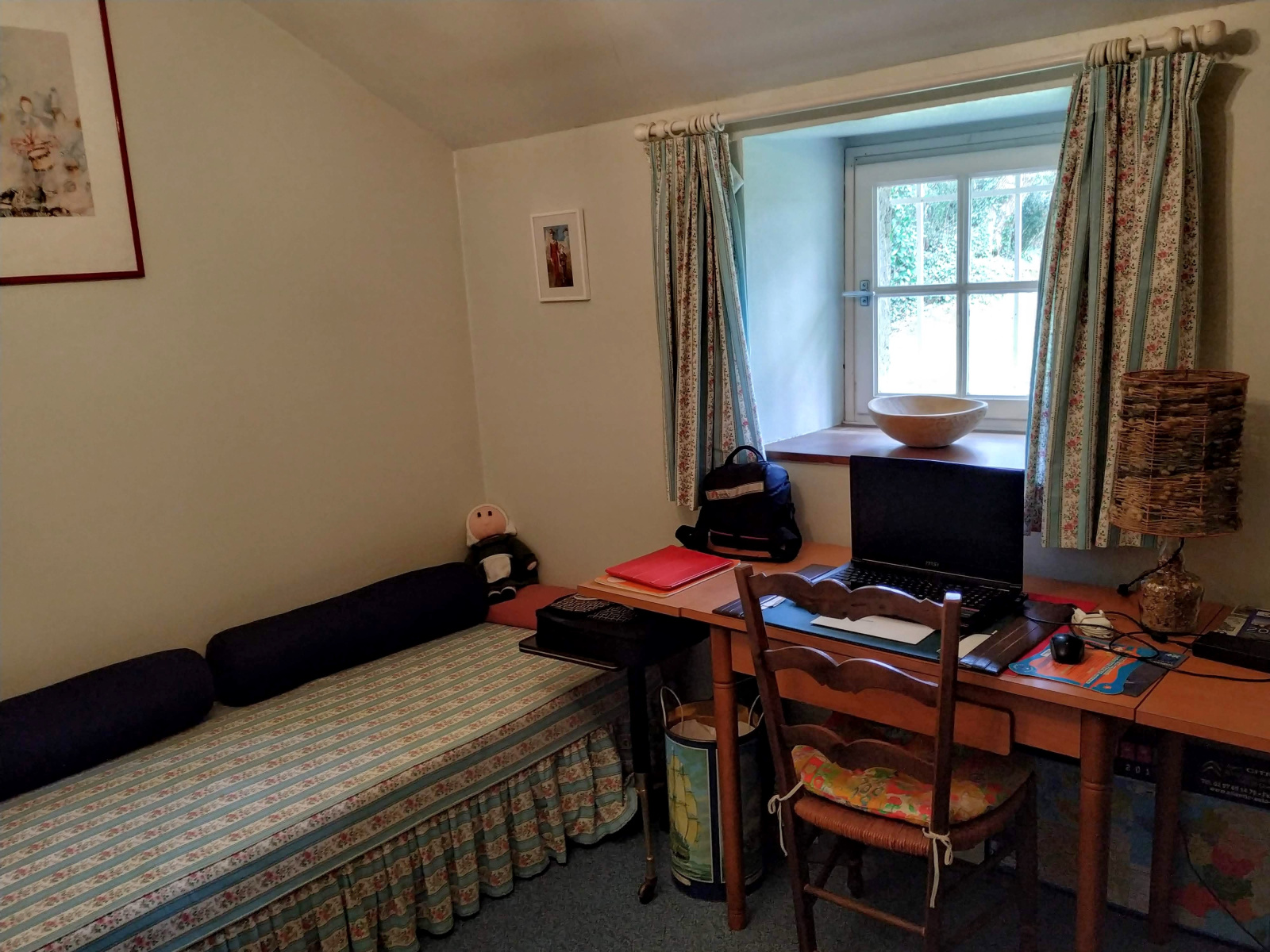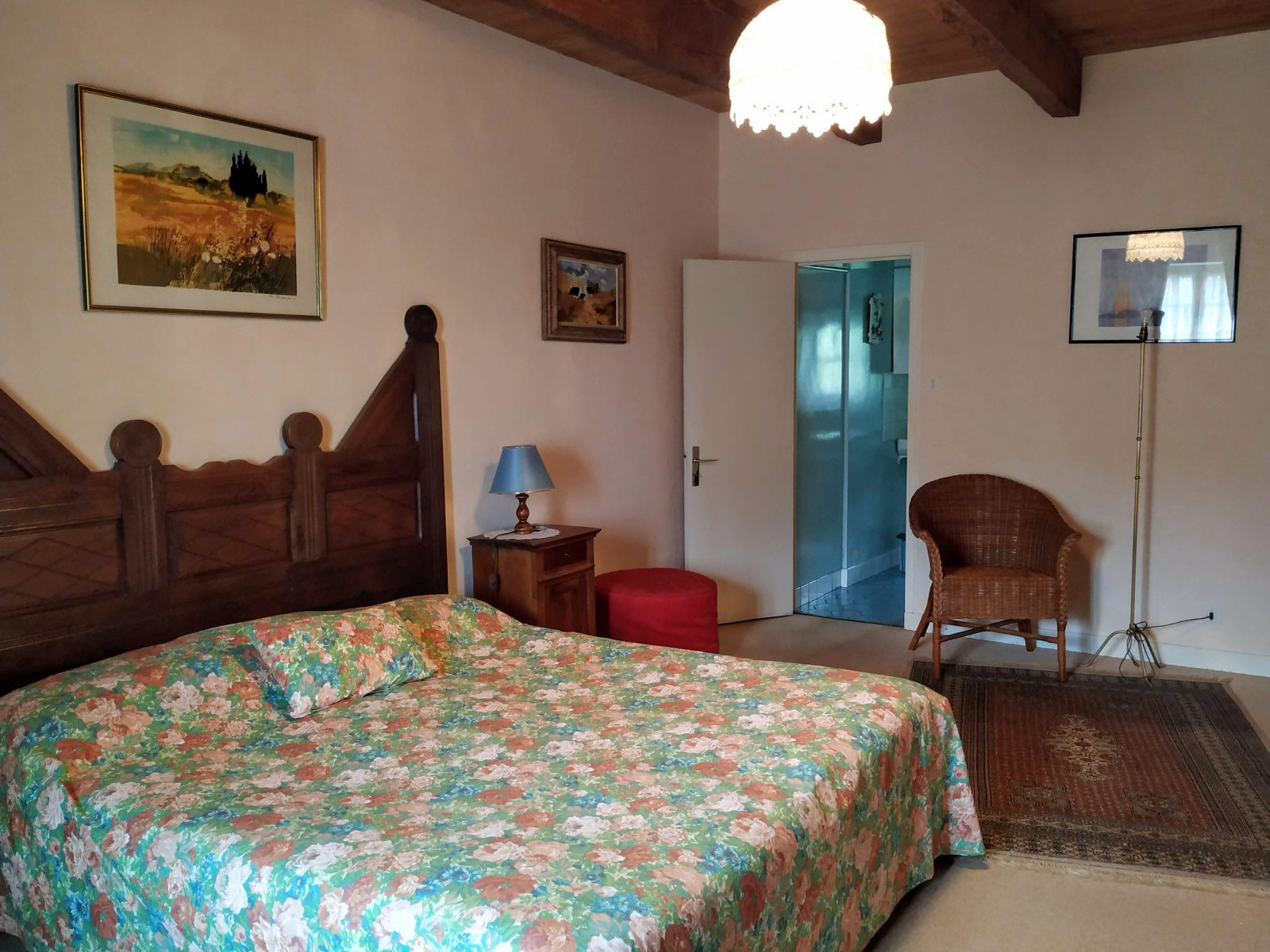 Exposé SUD, avec un accès immédiat au jardin. Cheminée à foyer ouvert.