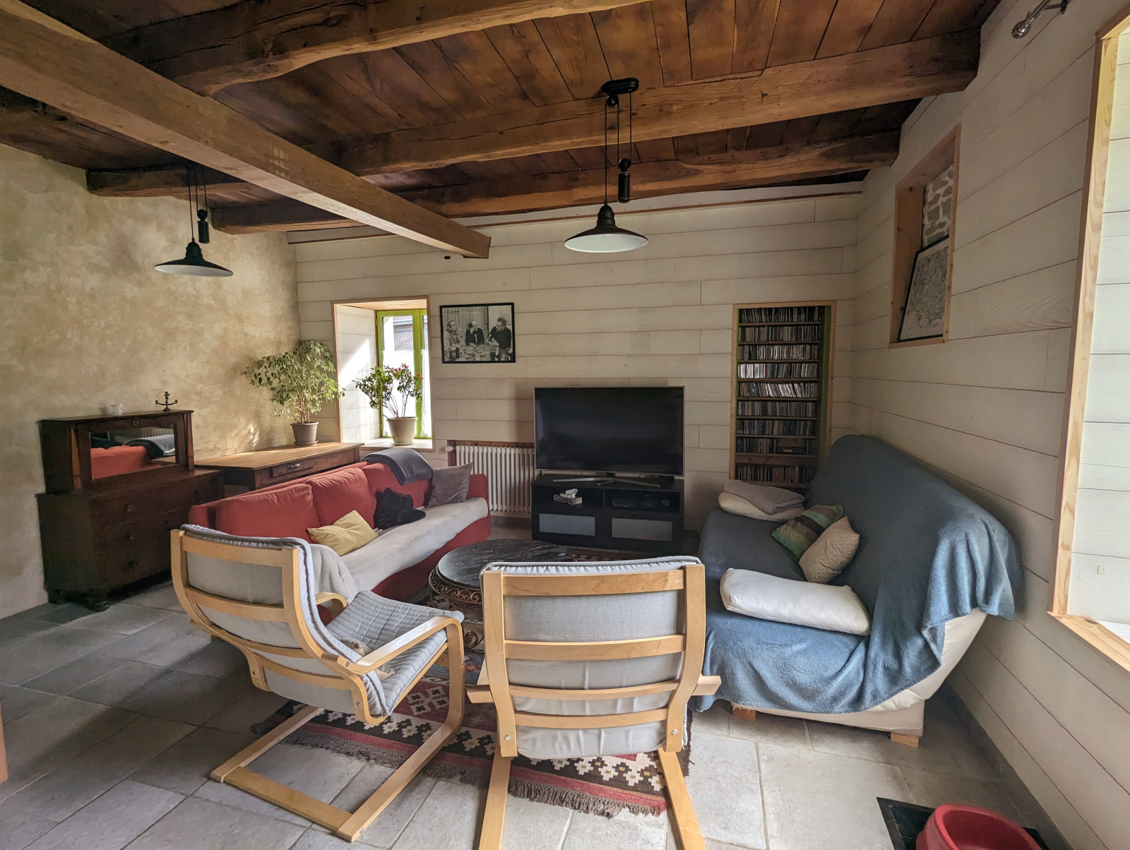 - Un bâtiment en pierres de 140 m² à rénover et dont la toiture vien dêtre refaite, idéal pour créer un second gîte ou des chambres d’hôtes.