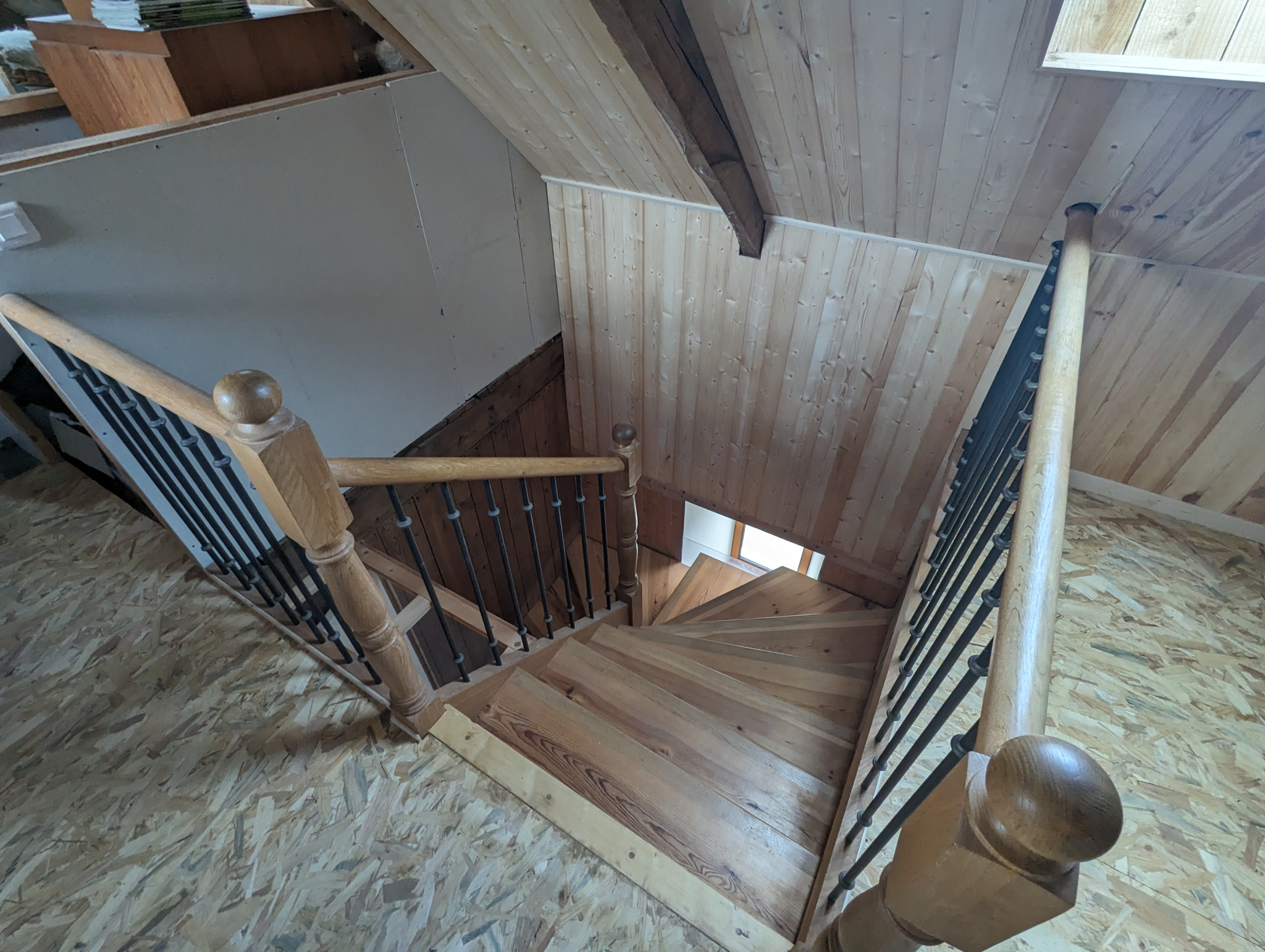 La rénovation a été réalisée avec des matériaux écologiques (chanvre, laine de bois, chaux-chanvre), offrant confort et durabilité.