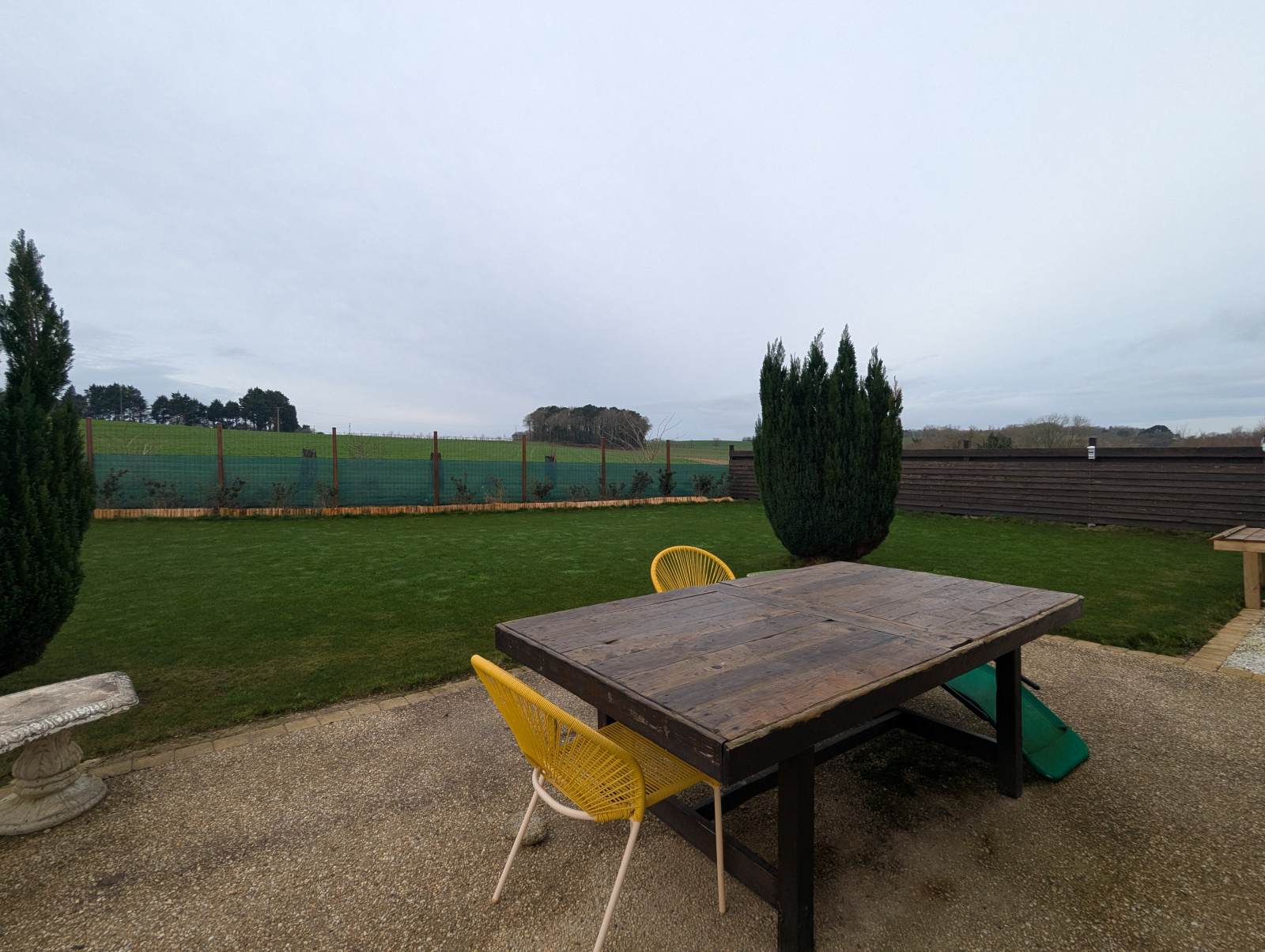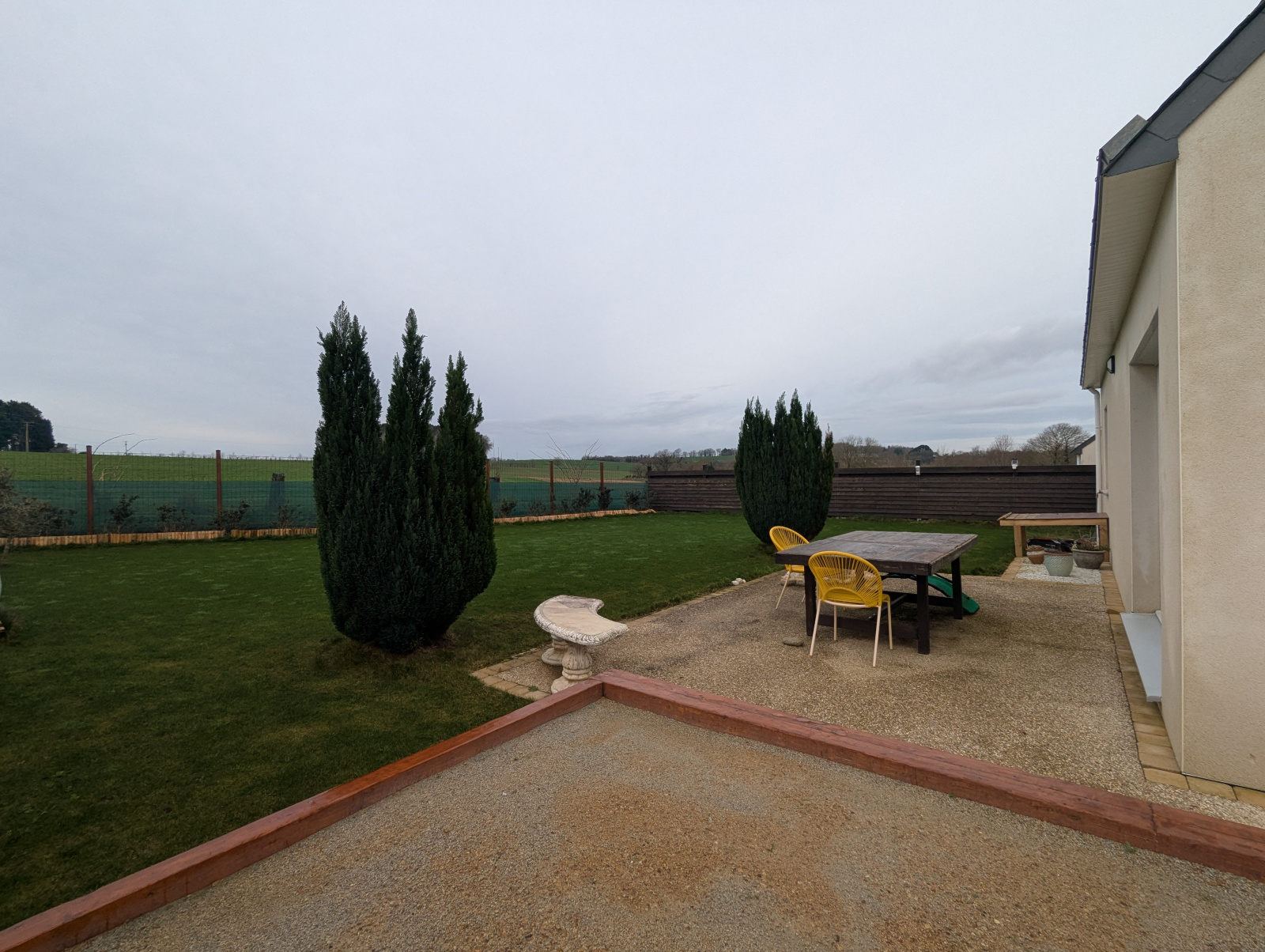 Le jardin, principalement situé à l’Ouest, vous garantit tranquillité et intimité. Parfait pour profiter des beaux jours avec une vue imprenable sur la campagne environnante.