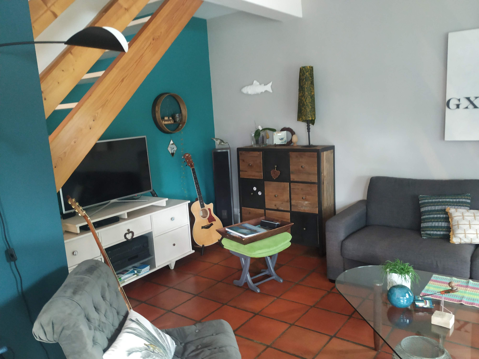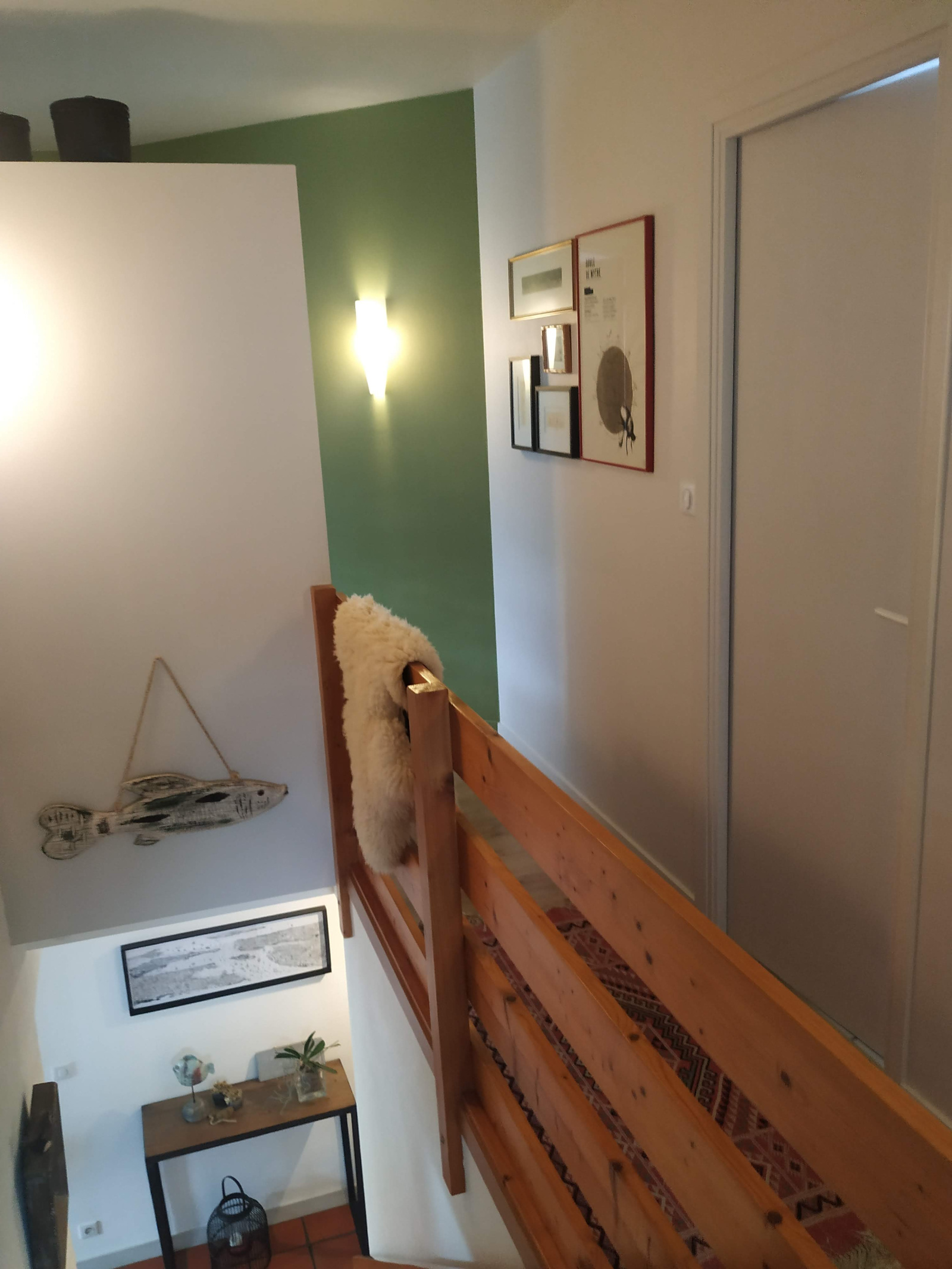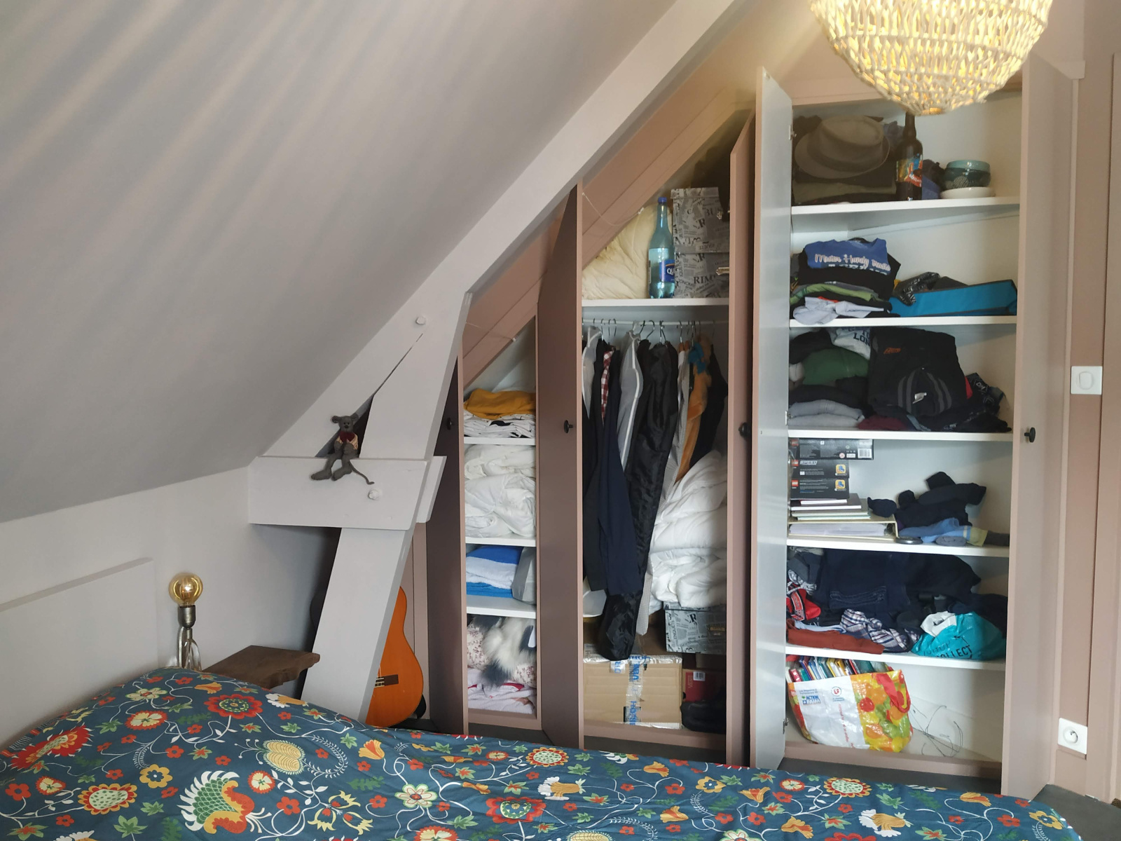 A l'étage auquel on accède par un bel escalier ajouré nous retrouvons 3 chambres avec rangements, une salle de bains, un bureau,un WC et de nombreux espaces de rangements.