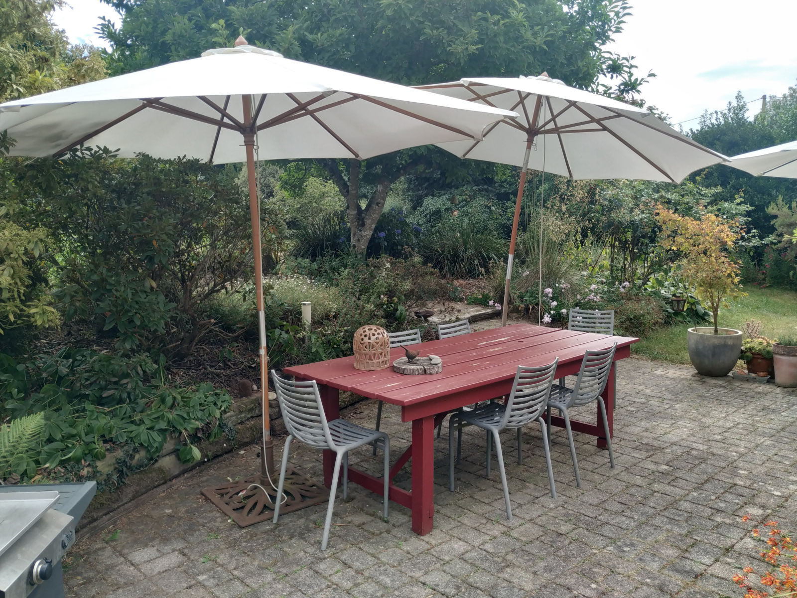 A l'extérieur, le jardin magnifiquement paysagé et entretenu dispose de plusieurs cabanons utiles pour stocker du bois et du matériel. Plusieurs espaces ont été aménagés dans ce jardin, et, vous pourrez profiter d'un bon repas en famille sur la belle terrasse, ou bien poursuivre par une sieste à l'ombre des arbres.