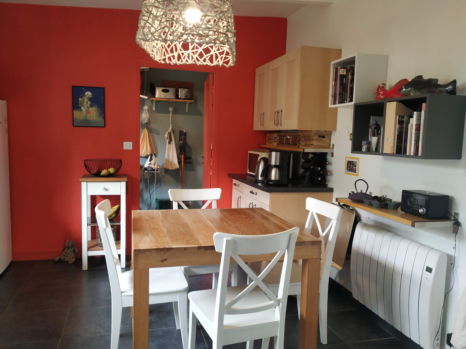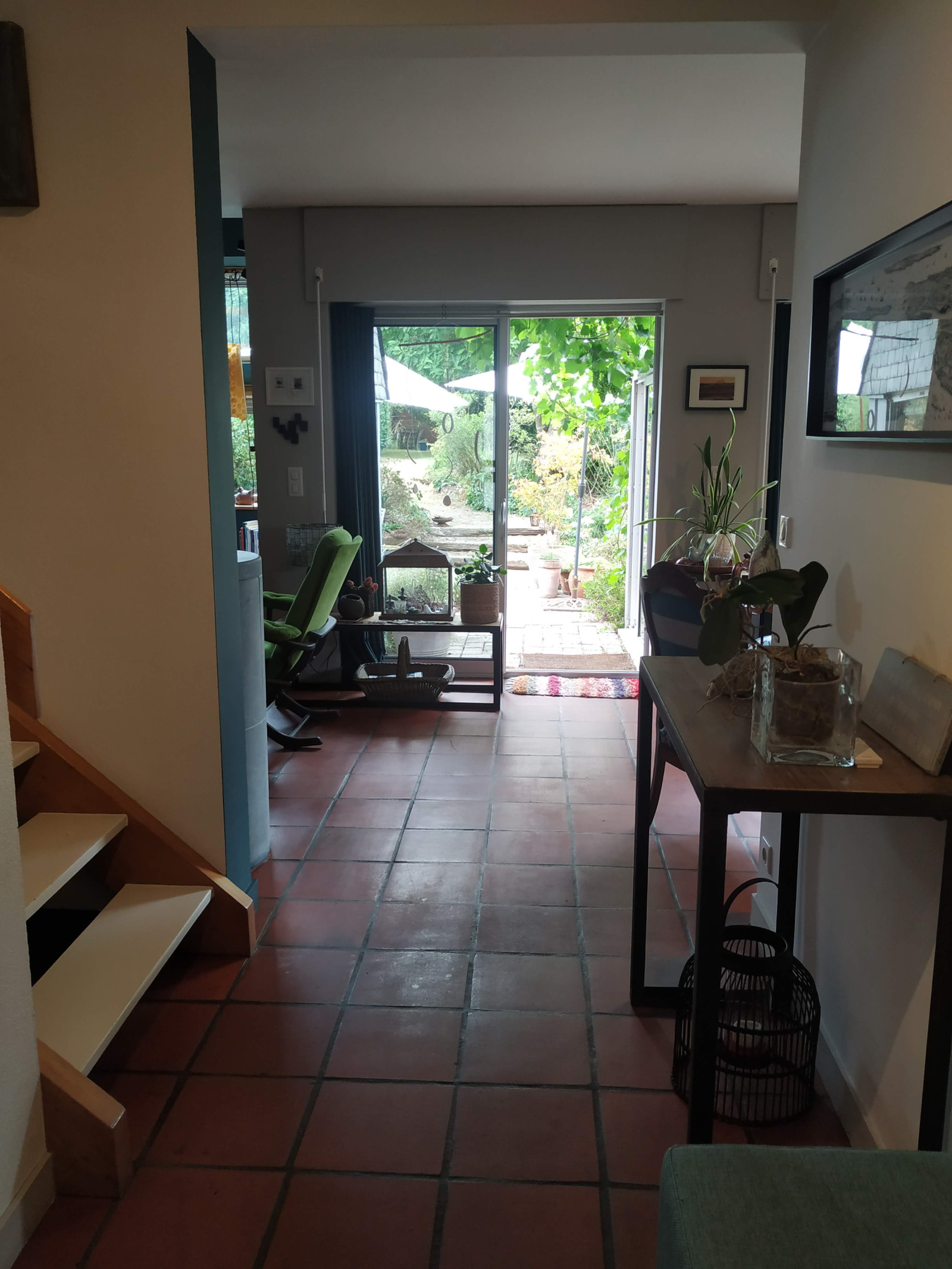 L'accès se fait par un vaste hall d'entrée qui comprend un grand placard et communique avec l'atelier et le garage.