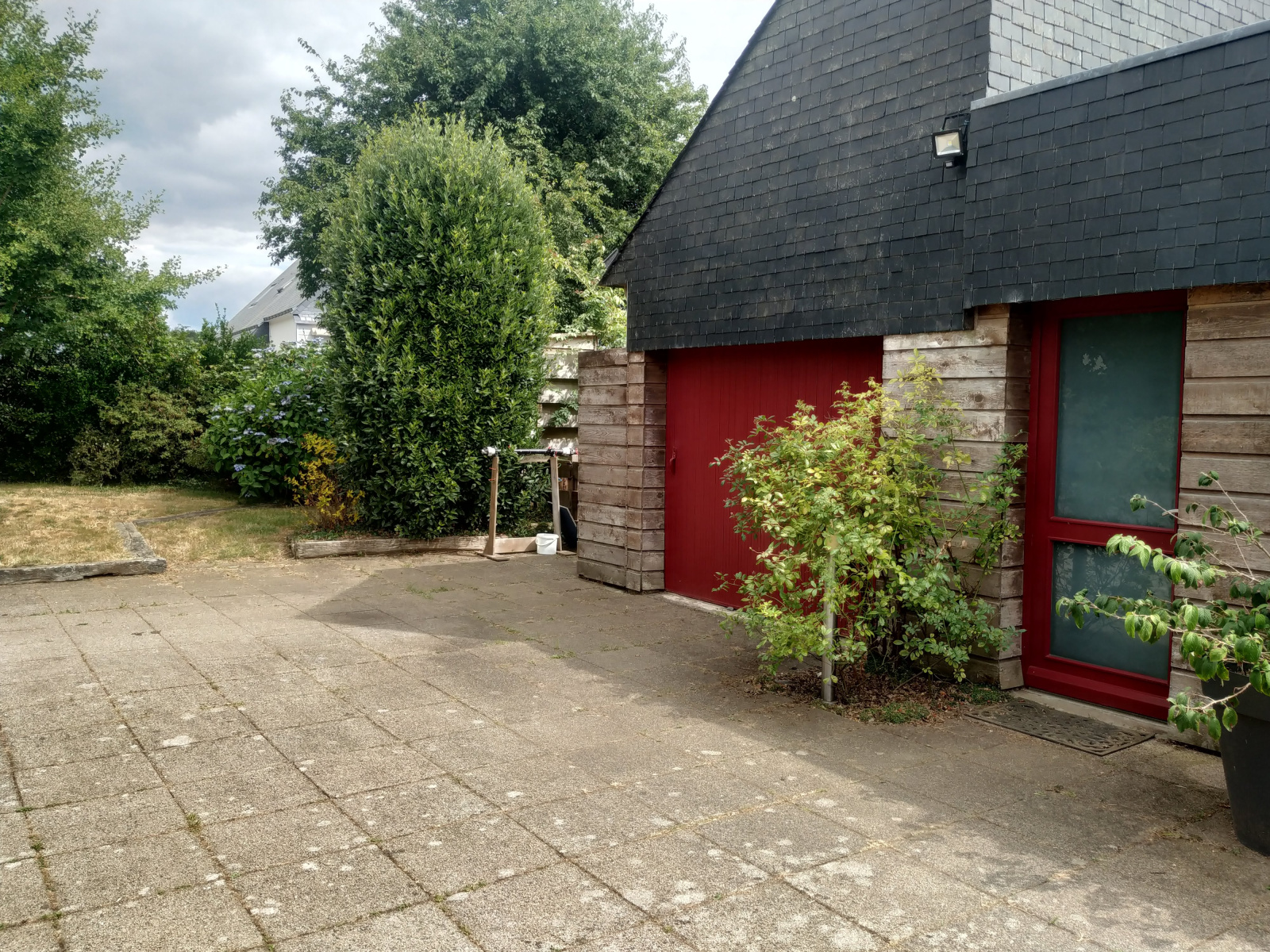 Cette maison dispose de son grand garage avec mezzanine et un accès à la cave, elle dispose également d'un atelier.