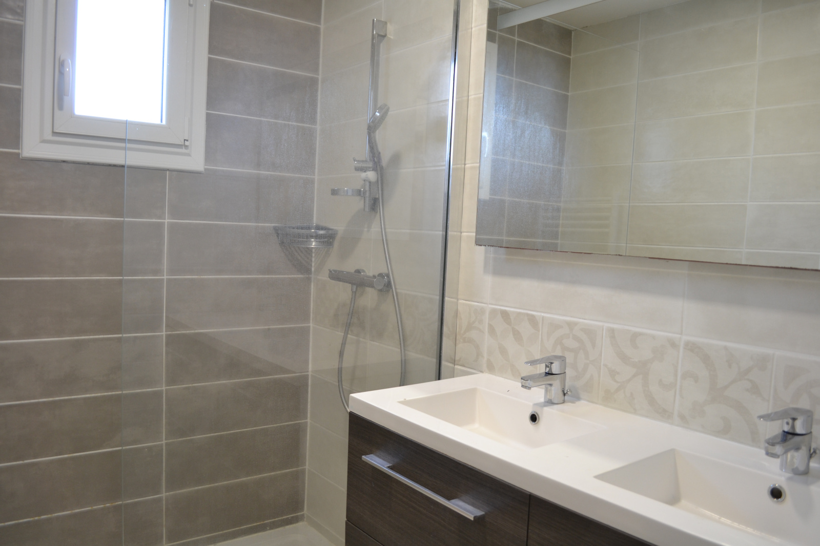 A l'étage vous trouverez deux grands chambres sur parquet (24m2 et 16m2) avec chacune un double placard, puis une salle de bains.