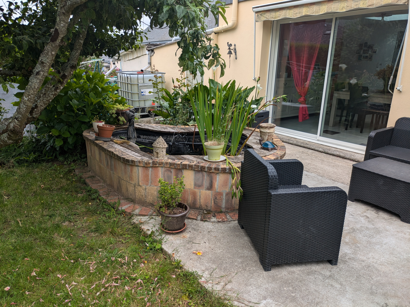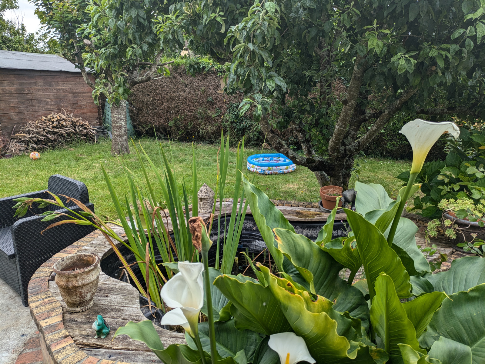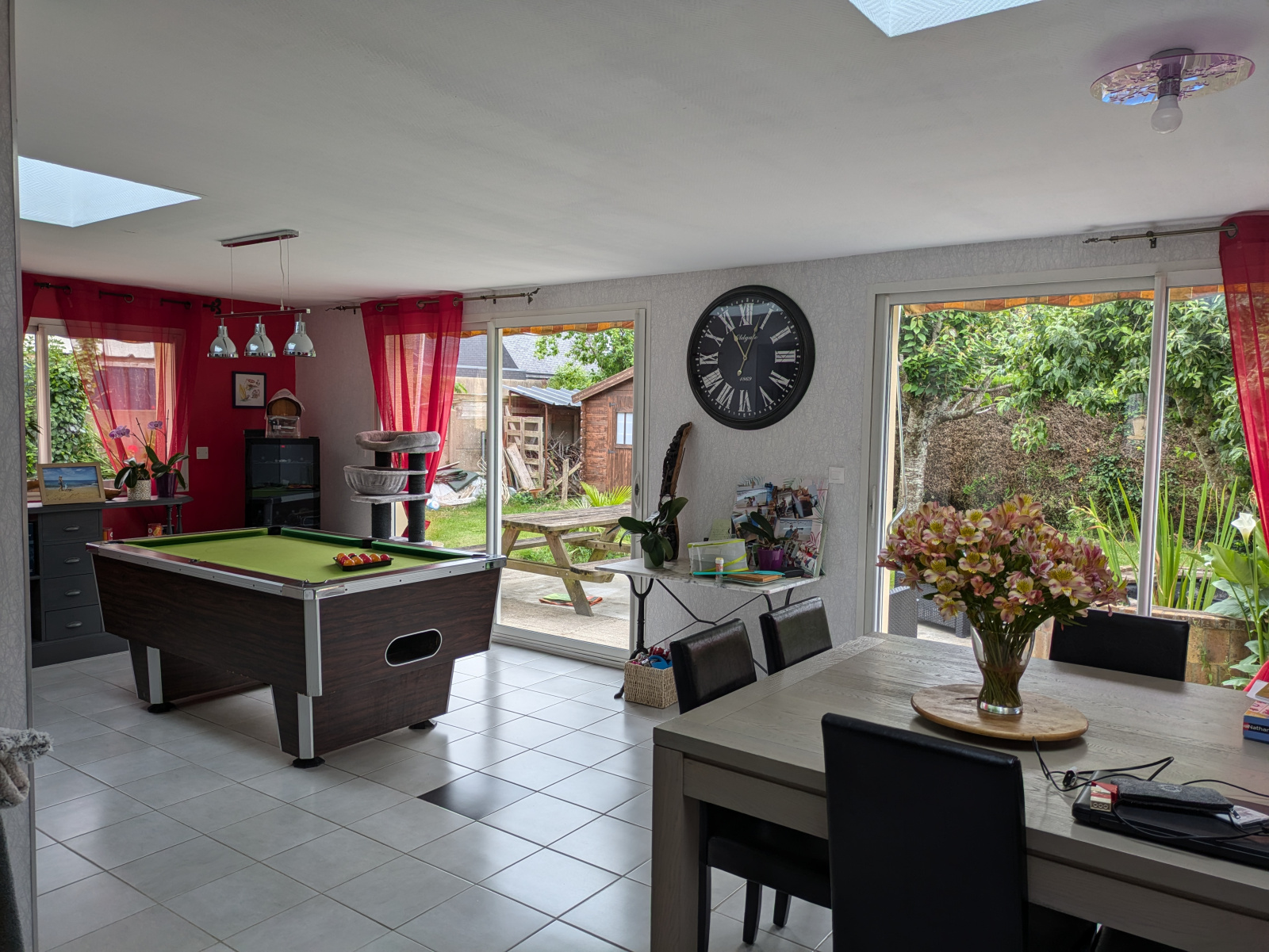 Le jardin de 603 m², avec son cabanon, offre un espace extérieur agréable.