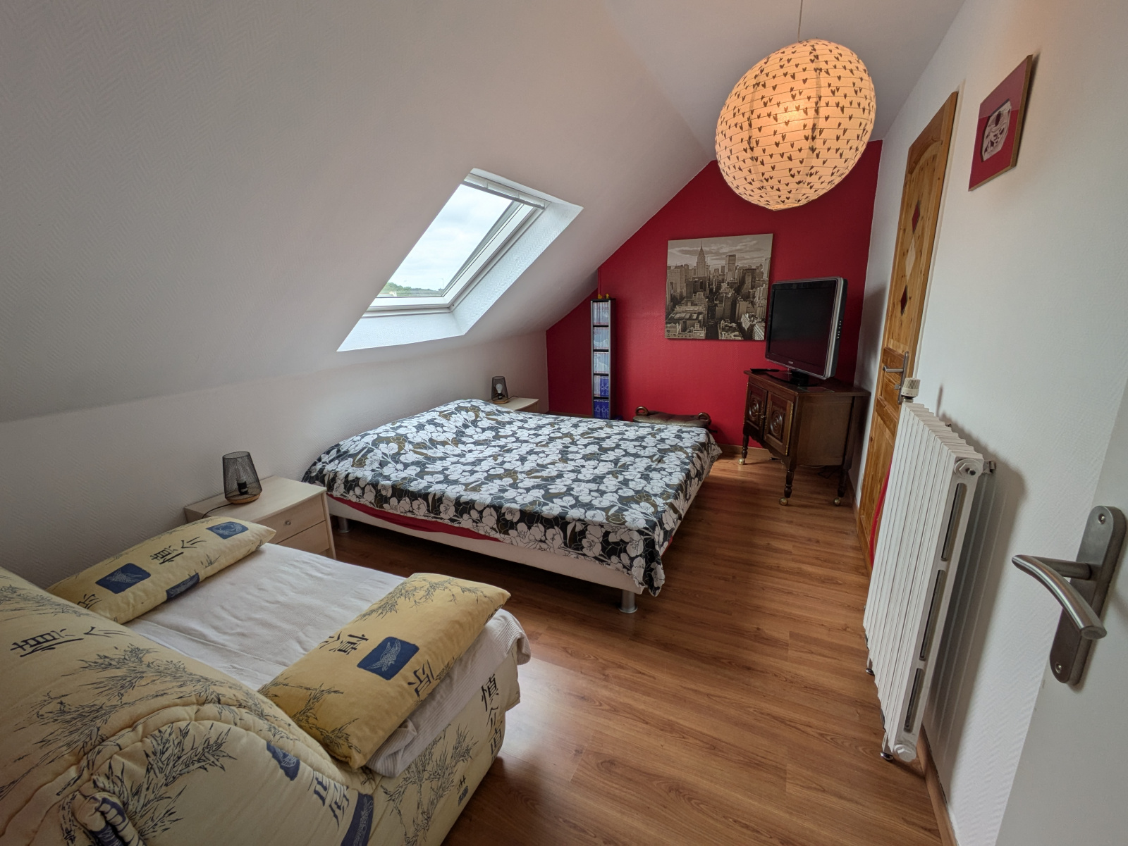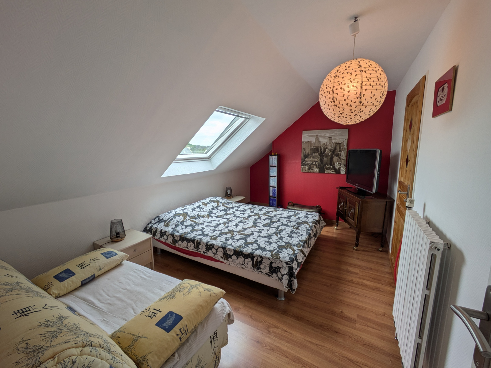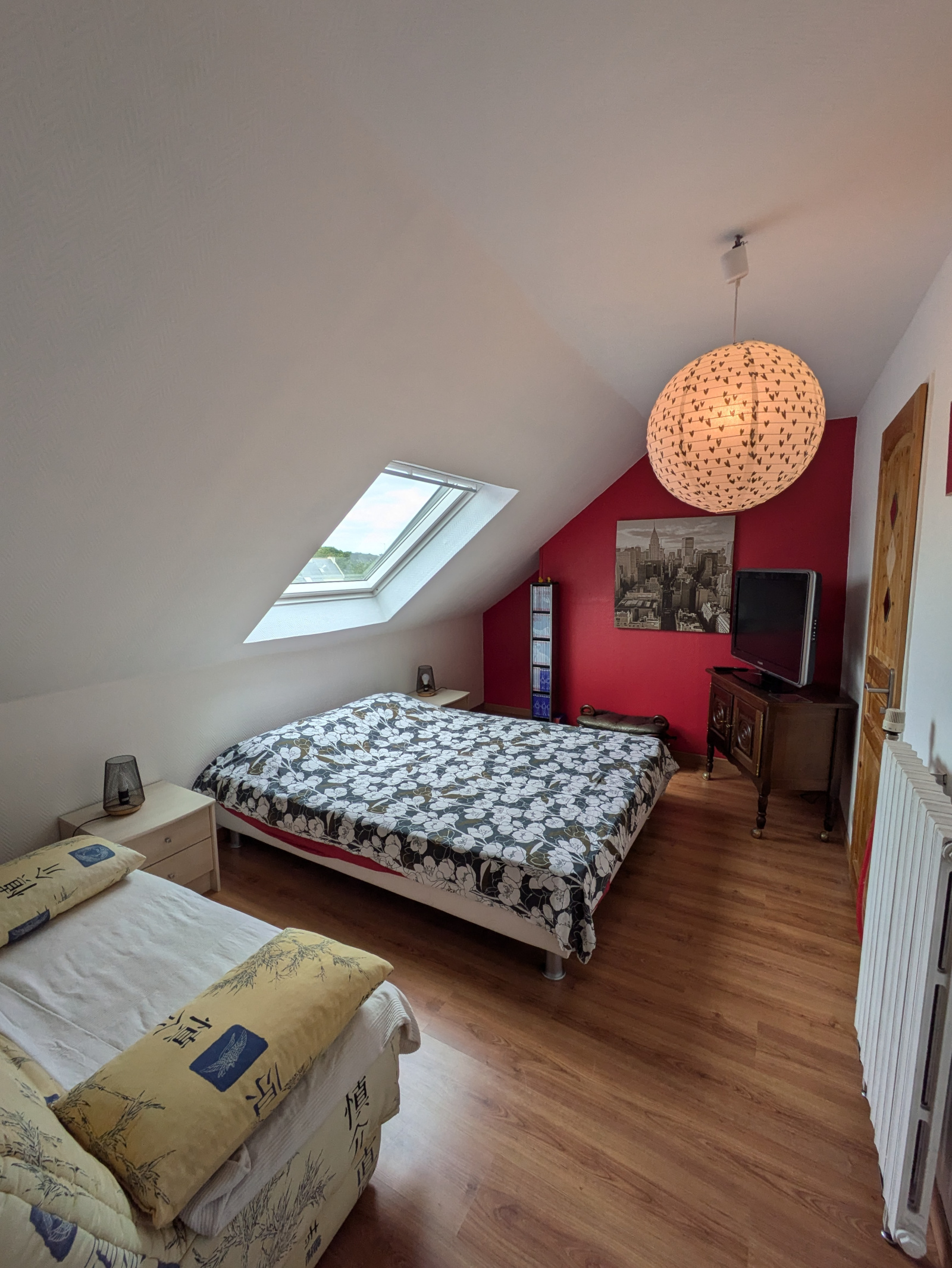 À l'étage, vous trouverez deux chambres supplémentaires, dont une avec dressing, ainsi qu'une petite salle d'eau avec WC, spécialement conçue pour les enfants.