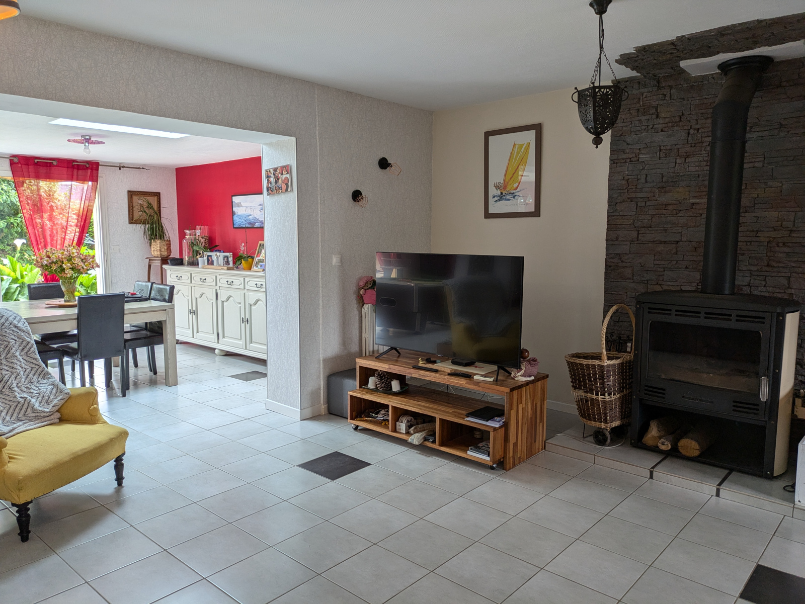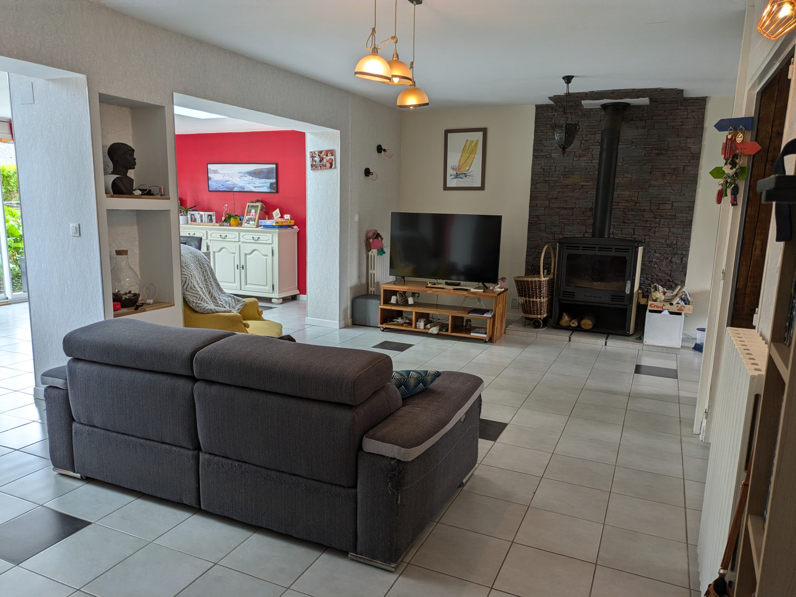 La maison est équipée d'un poêle à bois, d'un chauffage au gaz, d'un système d'aspiration centralisé ainsi que de volets électriques.