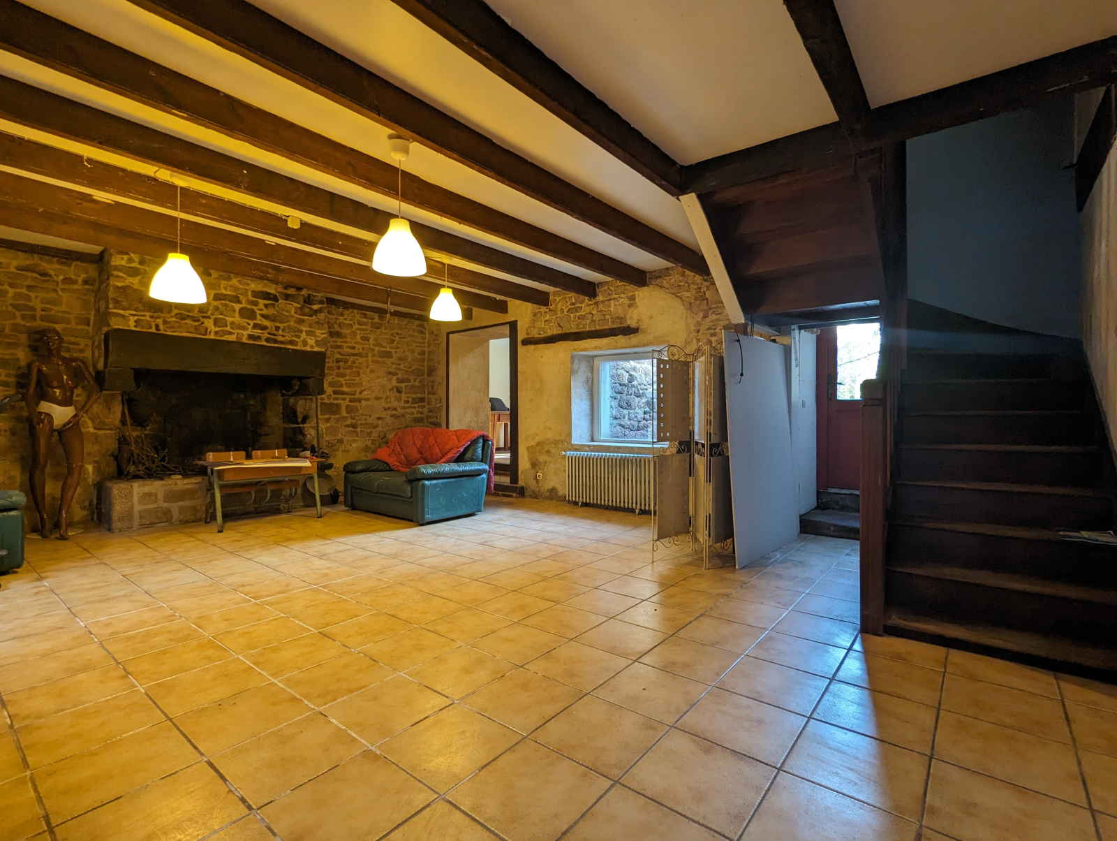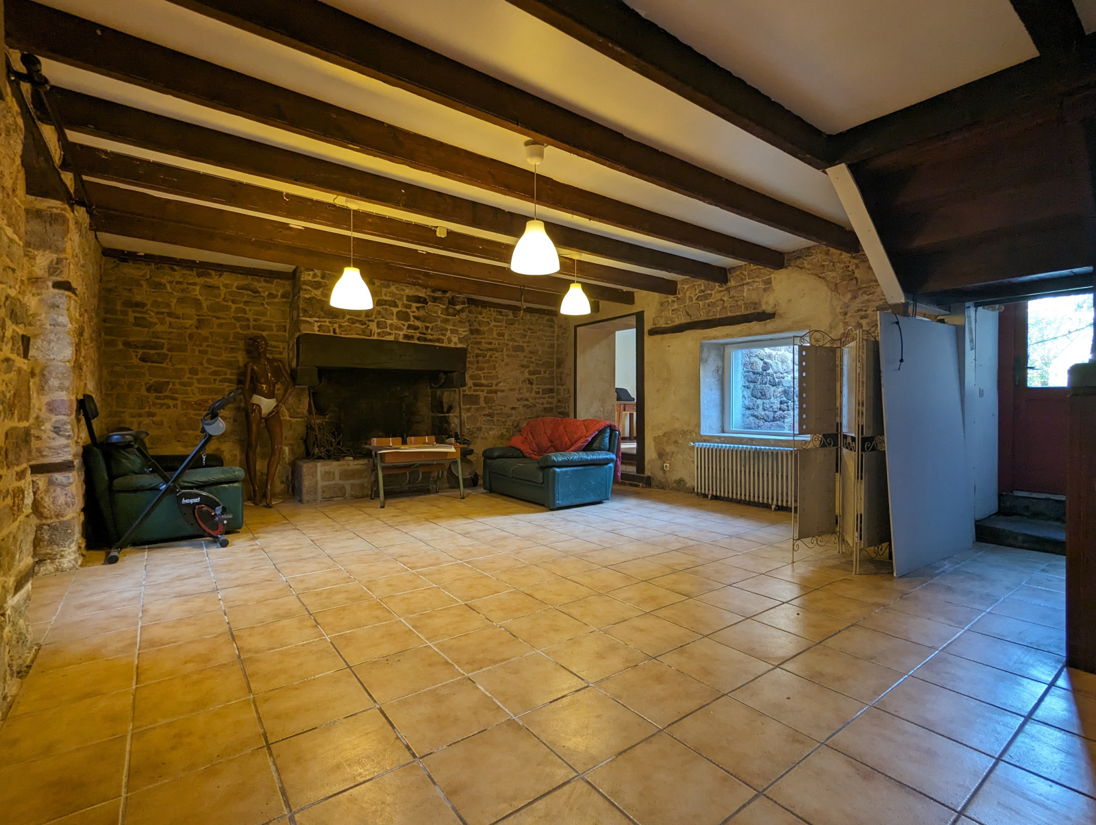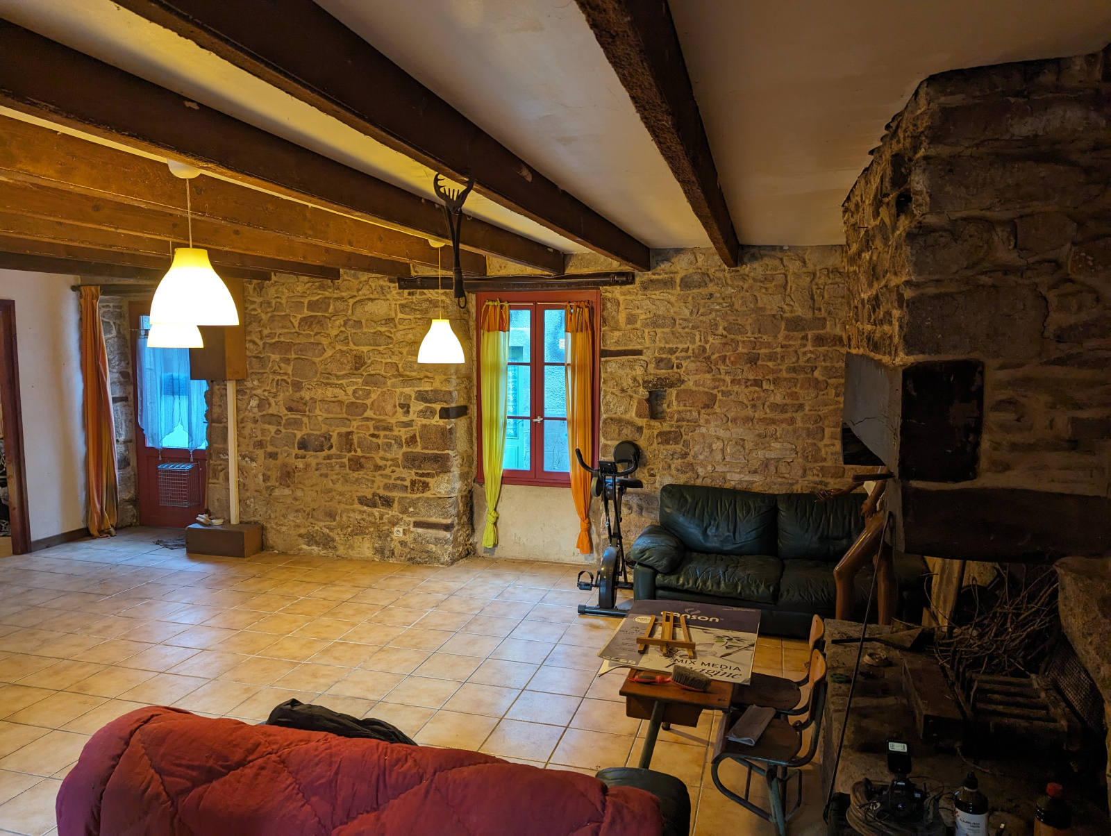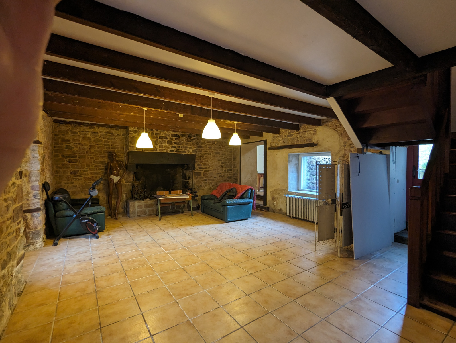 Salon séjour majestueux : Un immense salon séjour de 70m2, imprégné de l'atmosphère chaleureuse des vieilles pierres. Deux cheminées, dont une avec un insert, ajoutent une touche d'élégance et de caractère à cet espace déjà hors du commun. C'est l'endroit idéal pour créer des souvenirs inoubliables en famille ou entre amis.