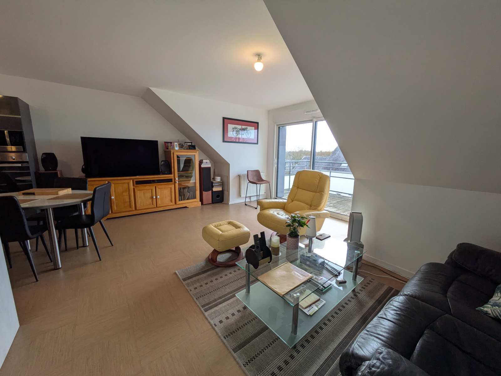 Exposé sud, le séjour d’environ 25 m² est lumineux et s’ouvre sur une agréable terrasse, idéale pour profiter des beaux jours. La cuisine ouverte est aménagée et équipée, l’ensemble est fonctionnel et facile à vivre au quotidien.