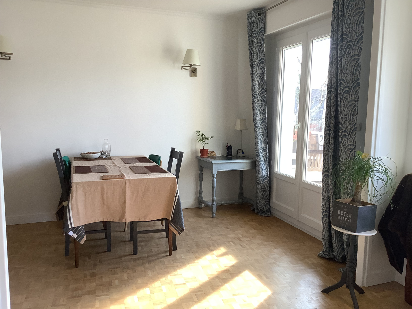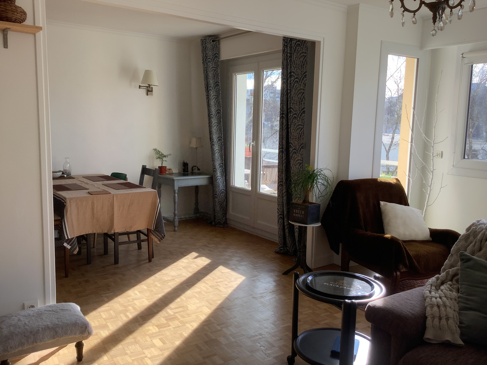 Ce charmant appartement de type 3 se compose d'une entrée accueillante, d'une salle à manger, d’un salon chaleureux avec une baie donnant sur un balcon, et d'une cuisine aménagée.