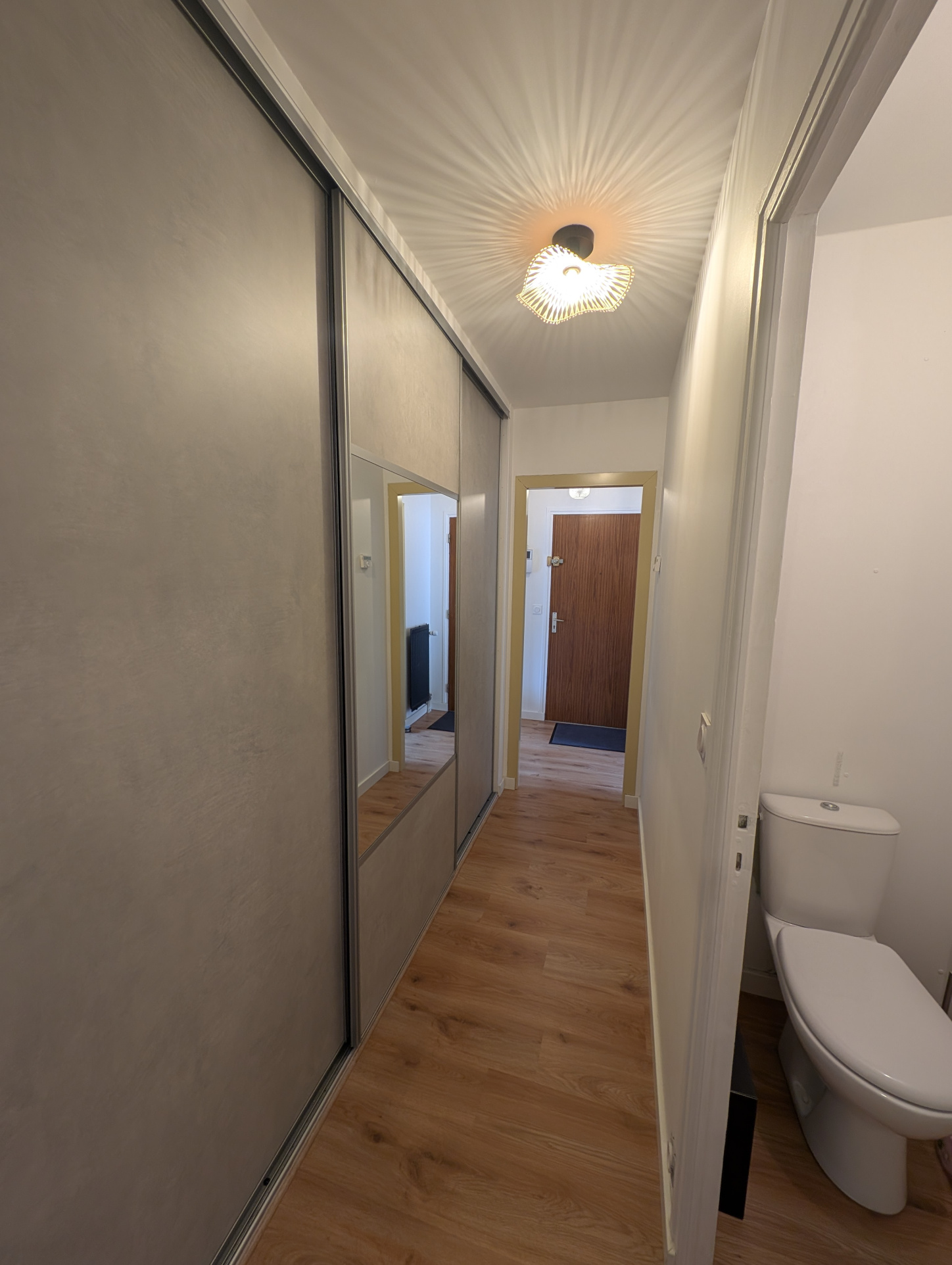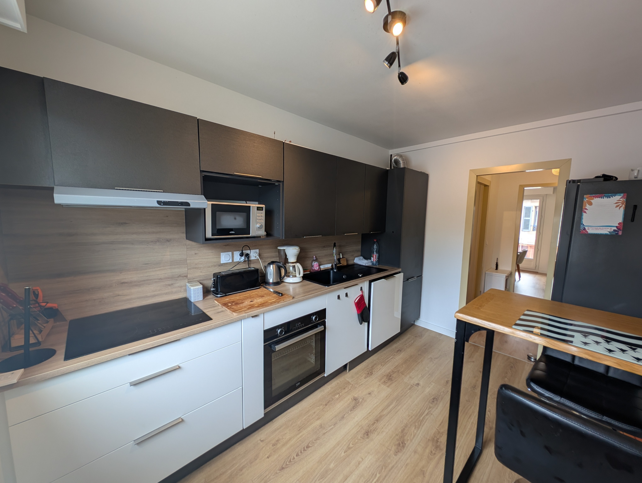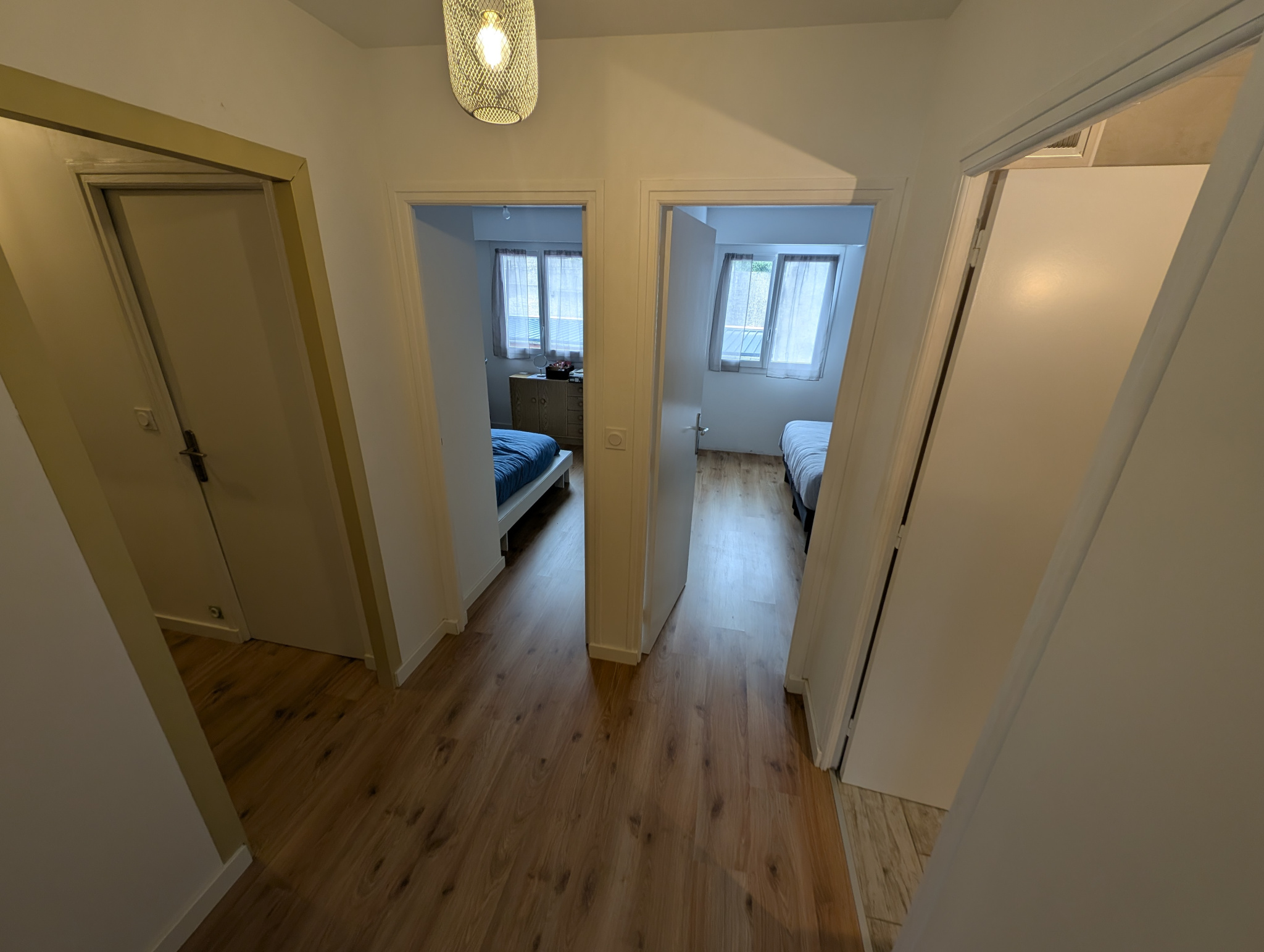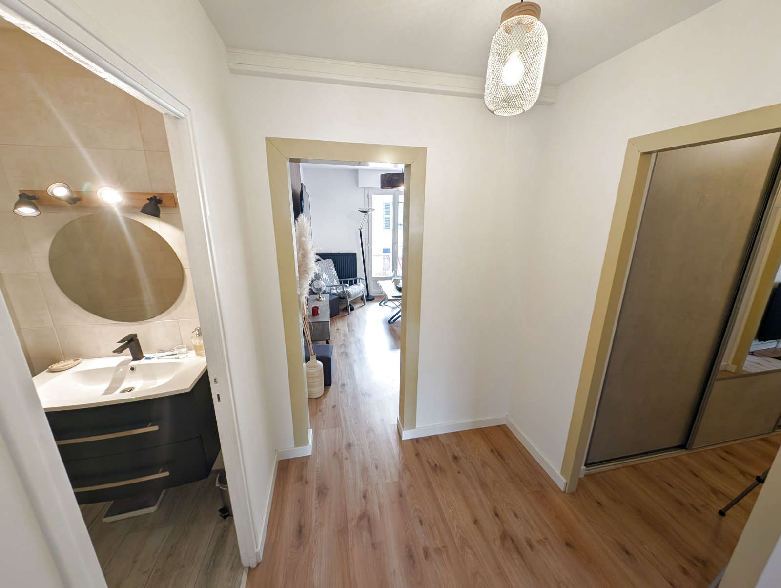 Situé au 1er étage d’un immeuble de 14 logements, cet appartement se compose d’une entrée, d’une cuisine aménagée avec cellier attenant, d’un séjour-salon donnant sur un balcon, de deux chambres, d’une salle d’eau avec douche et vasque, ainsi que d’un WC séparé.