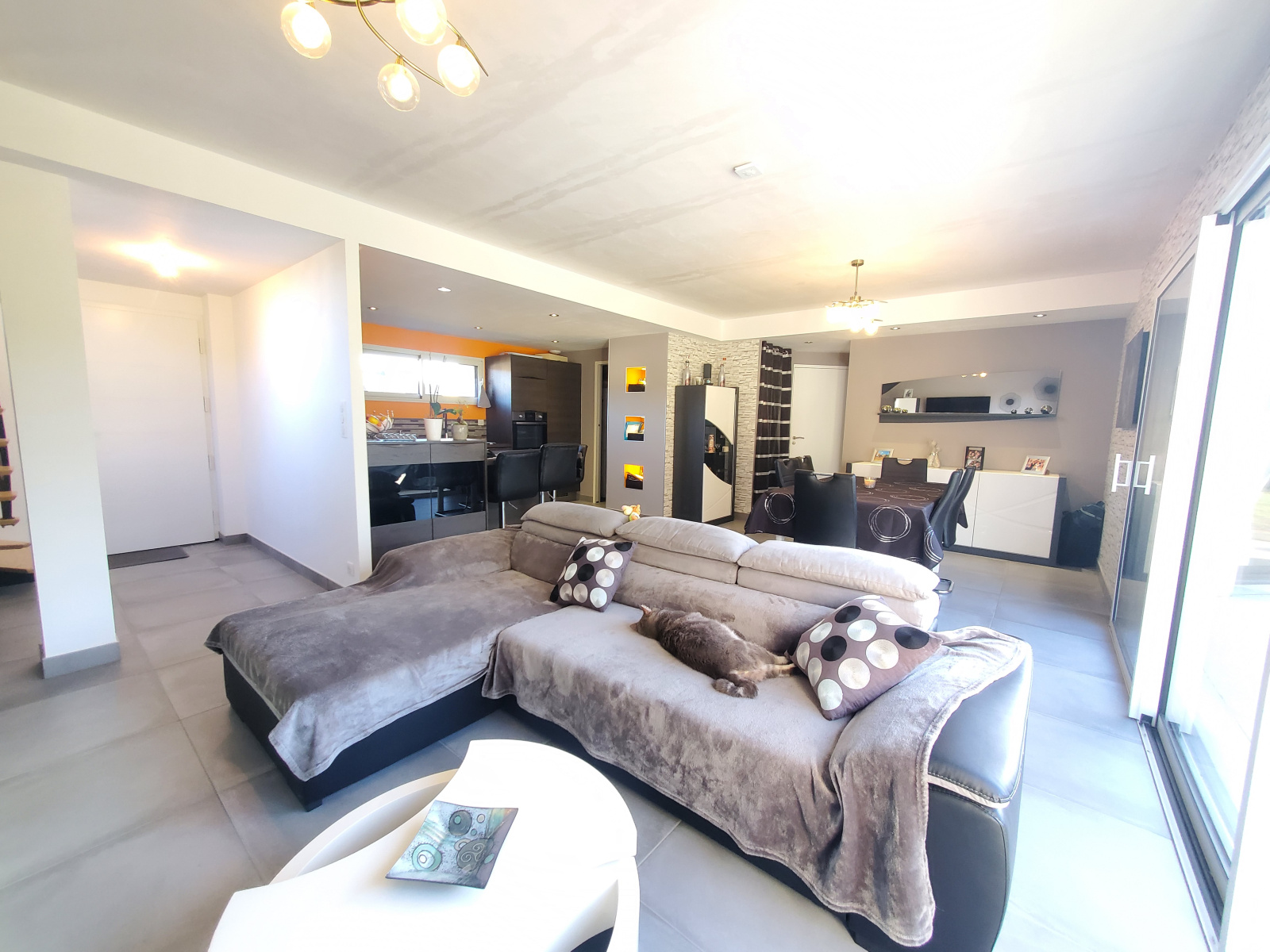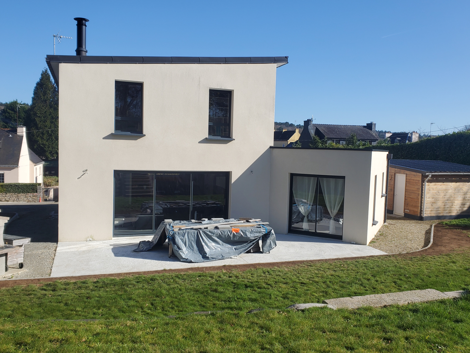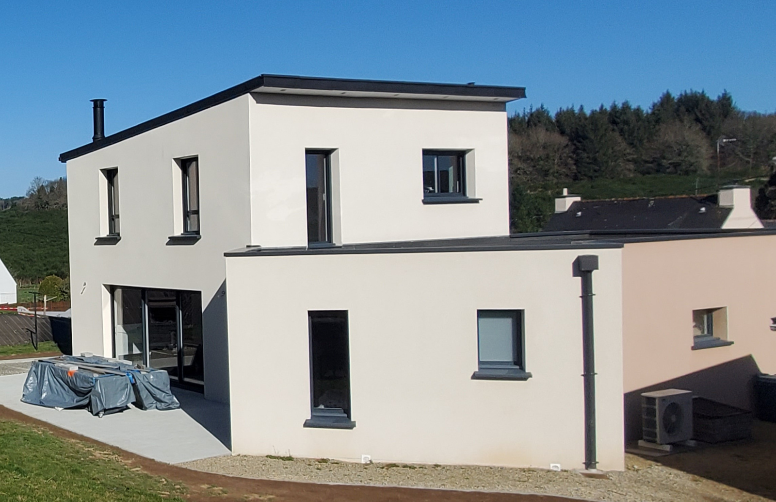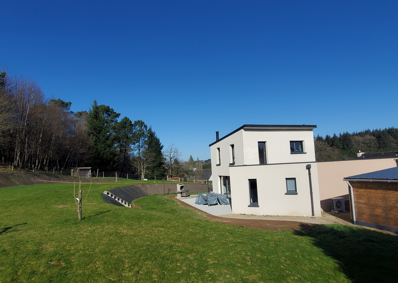 L'IMMOBILIER DU SCORFF vous propose cette maison contemporaine de 2017 réalisée par un maître d'oeuvre aux normes RT2012 d'une surface de 110 m² environ édifiée sur un terrain de 2300 m² environ - bornage en cours.