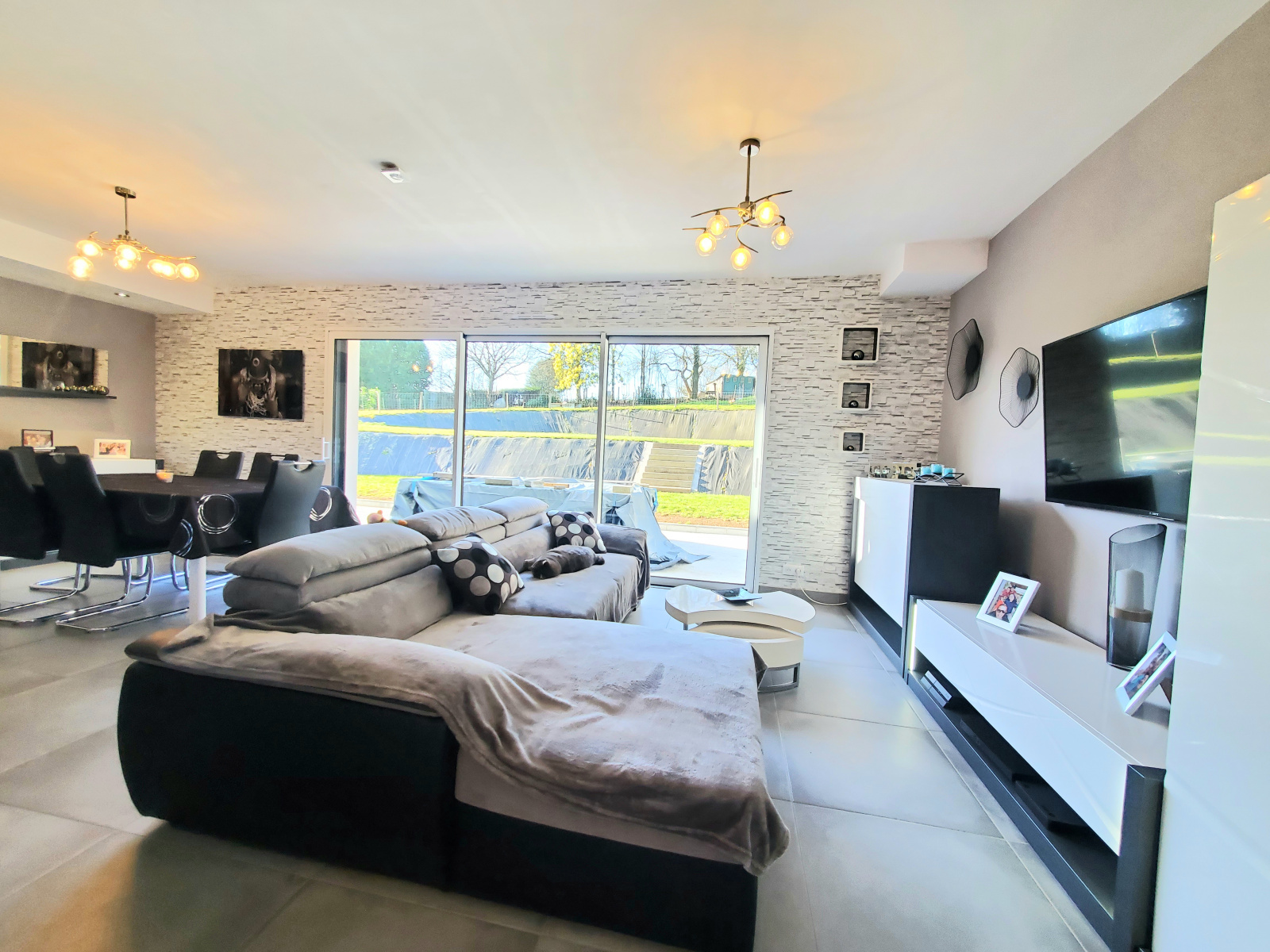 Dans une voie sans issue et bénéficiant d' un cadre bucolique avec une jolie vue sur la campagne, cette maison neuve sous garantie décennale située sur la commune de LANVAUDAN et à seulement 30 minutes des plages vous séduira par son intérieur soigné, son entrée, sa lumineuse pièce de vie avec salon/ séjour, la pose d'un poêle à bois ou à granulé est possible toute l'installation est prête ! Vous aurez accès depuis le séjour à une terrasse de 30 m² environ avec une exposition sud et sans vis-à-vis. Une cuisine américaine entièrement aménagée et équipée, un WC indépendant, un dégagement avec placard et une suite parentale avec un espace dressing et sa salle d'eau privative (douche à l'Italienne avec jet massant, un sèche serviette et une grande vasque).