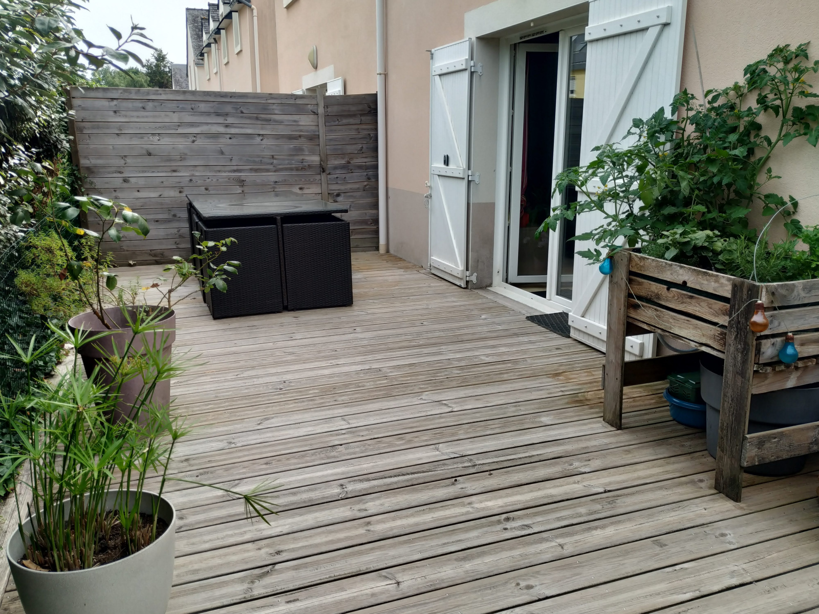 A l'étage, desservis par un agréable escalier en bois, se trouve 3 belles chambres avec chacune un placard, et un salle de bains avec un WC. Côté extérieur vous profiterez d'une belle terrasse en bois sans vis à vis.