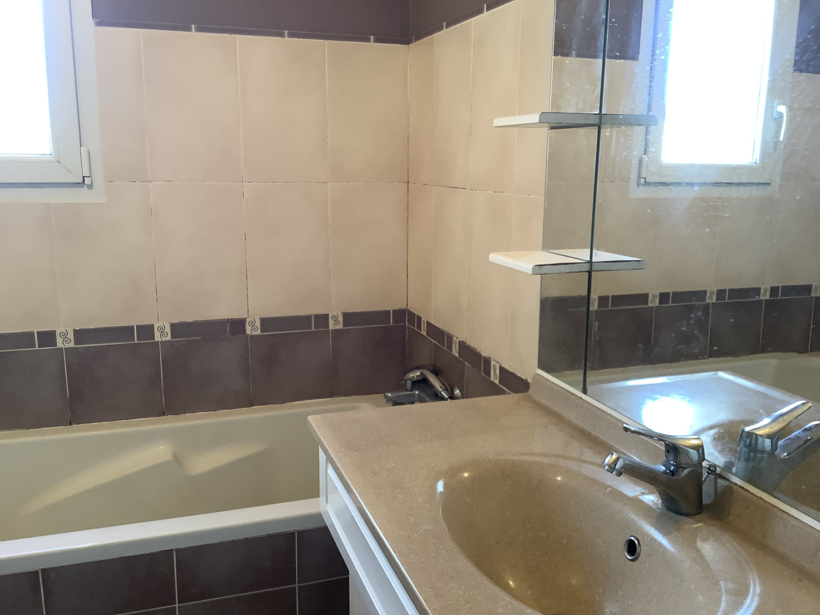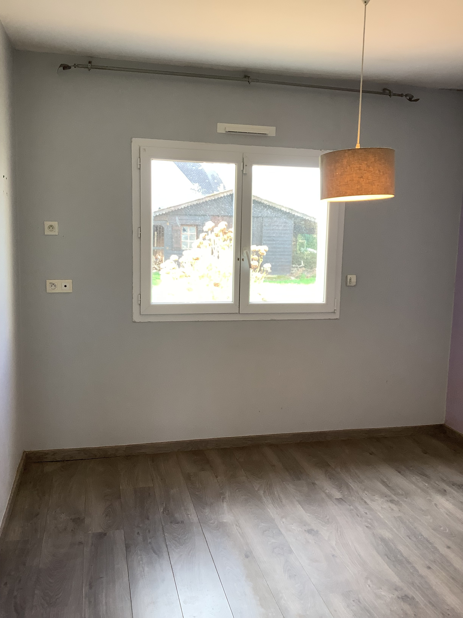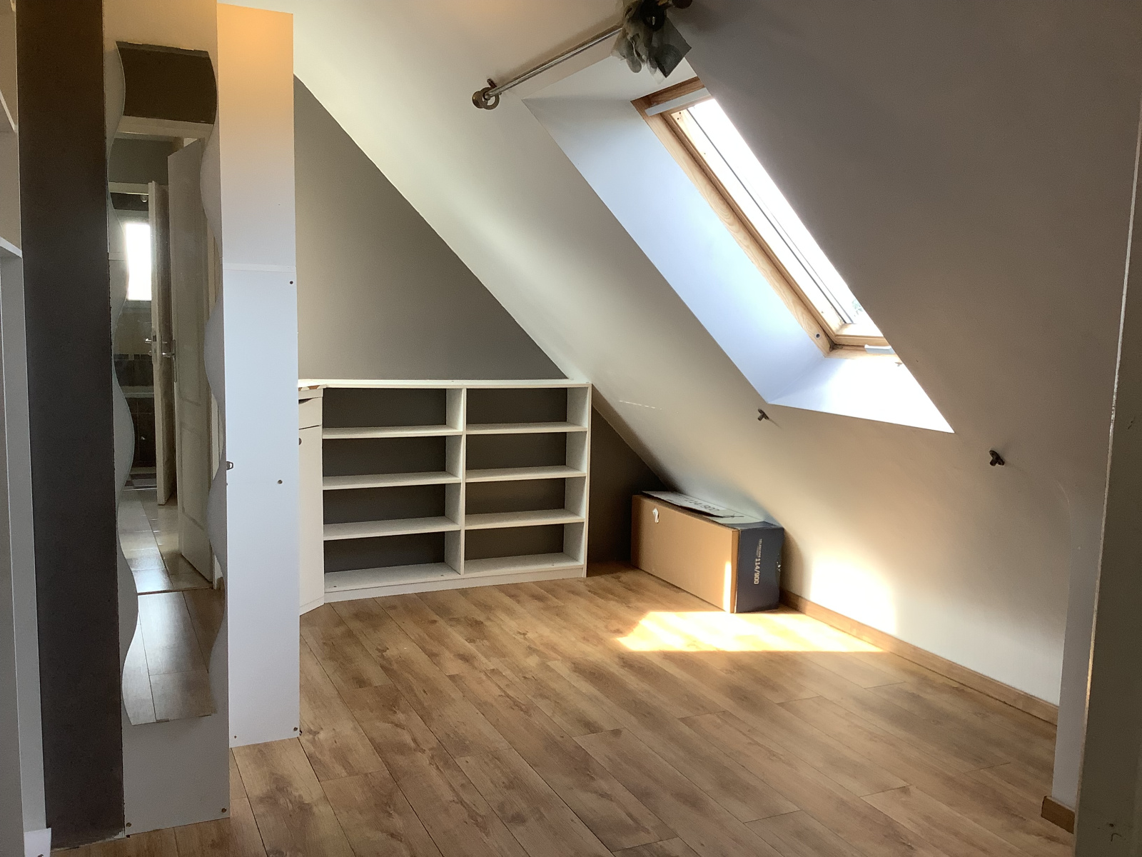 À l'étage, un palier lumineux dessert deux belles chambres équipées de placards intégrés, un bureau ou dressing offrant un espace de travail et de rangement supplémentaire, une salle de bain avec une baignoire et une vasque ainsi qu'un WC séparé.