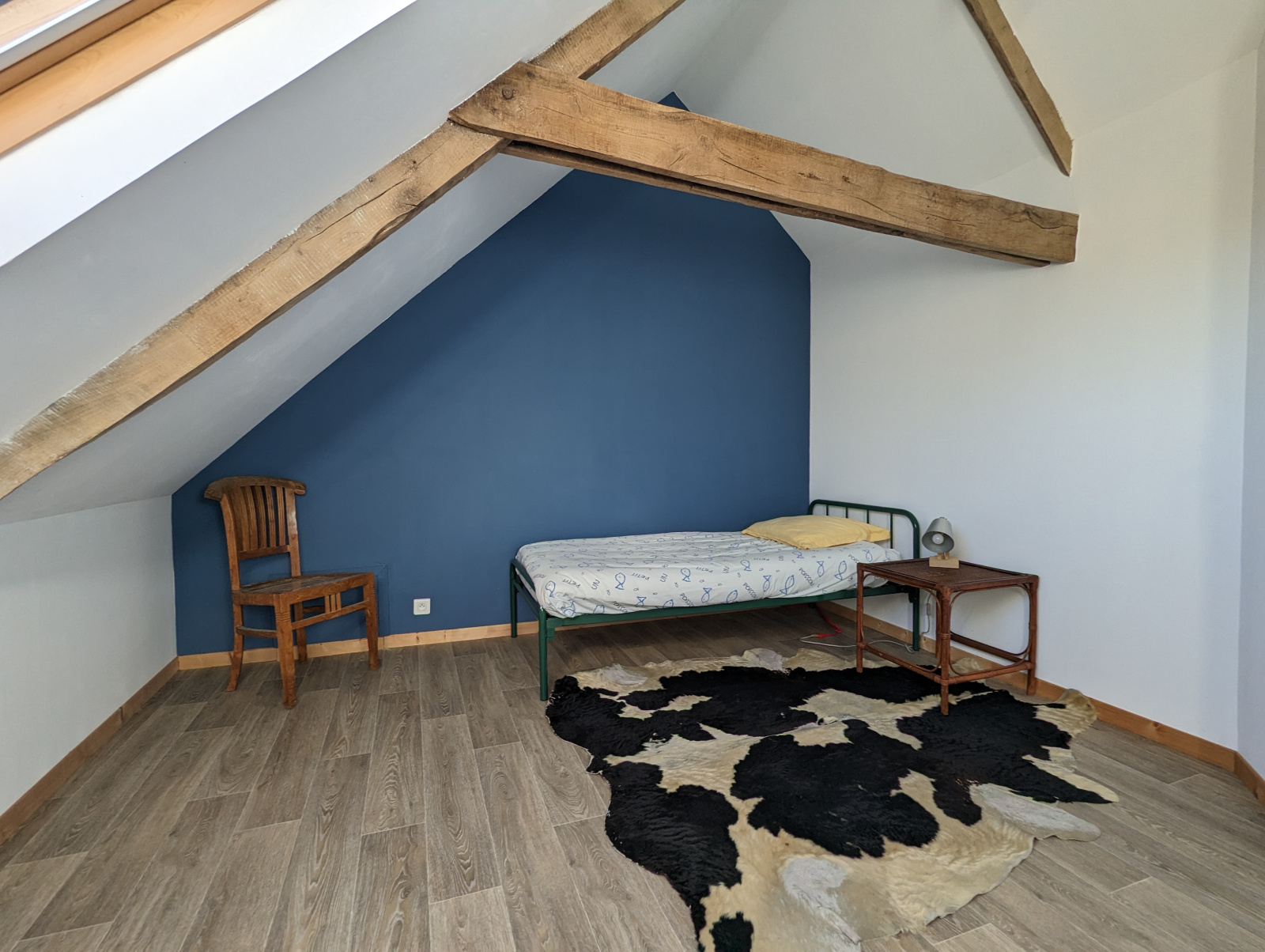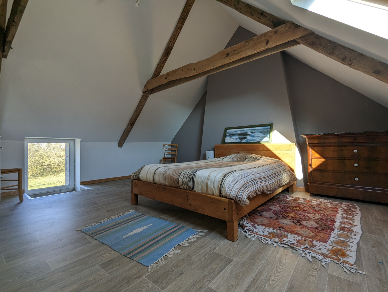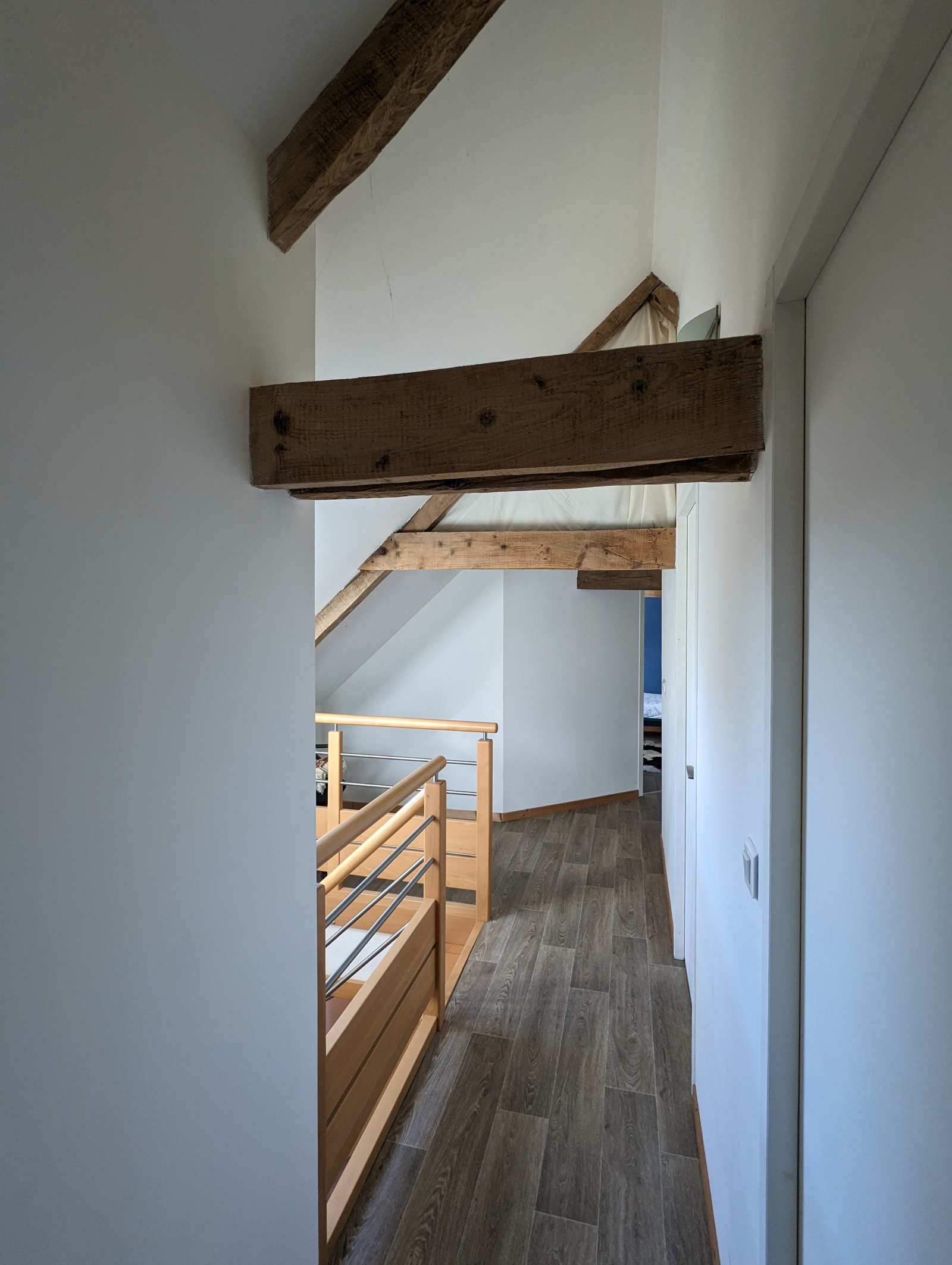 A l'étage vous trouverez le charme de l'ancien avec de belles poutres apparentes dans les 2 chambres.Un dressing ,une salle de bains et un WC.