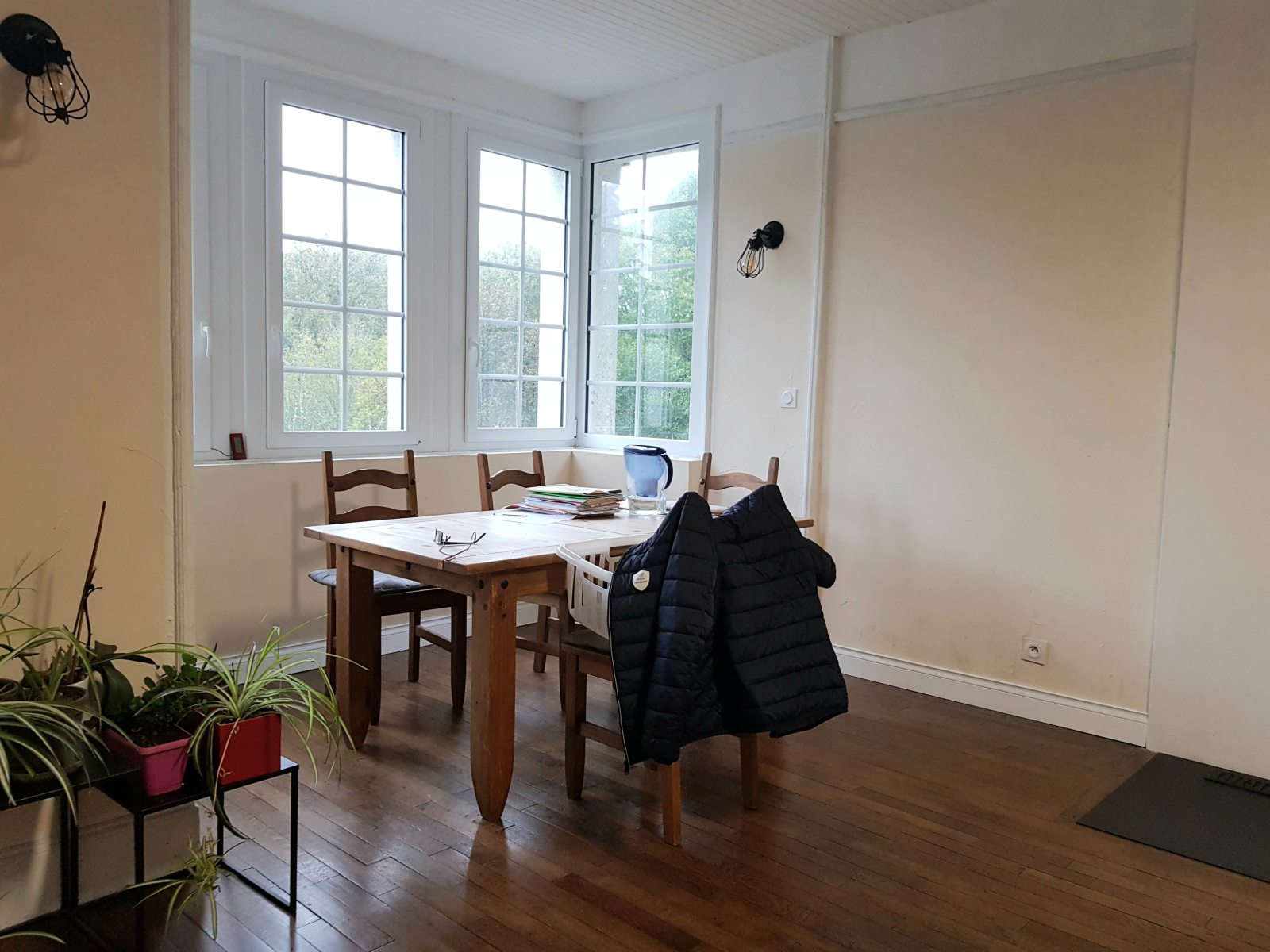 Toutes les huisseries sont en double vitrage (PVC), chauffage (pompe à chaleur) avec radiateur en fonte et un poêle à granule, un ballon thermodynamique, tout à l'égout.