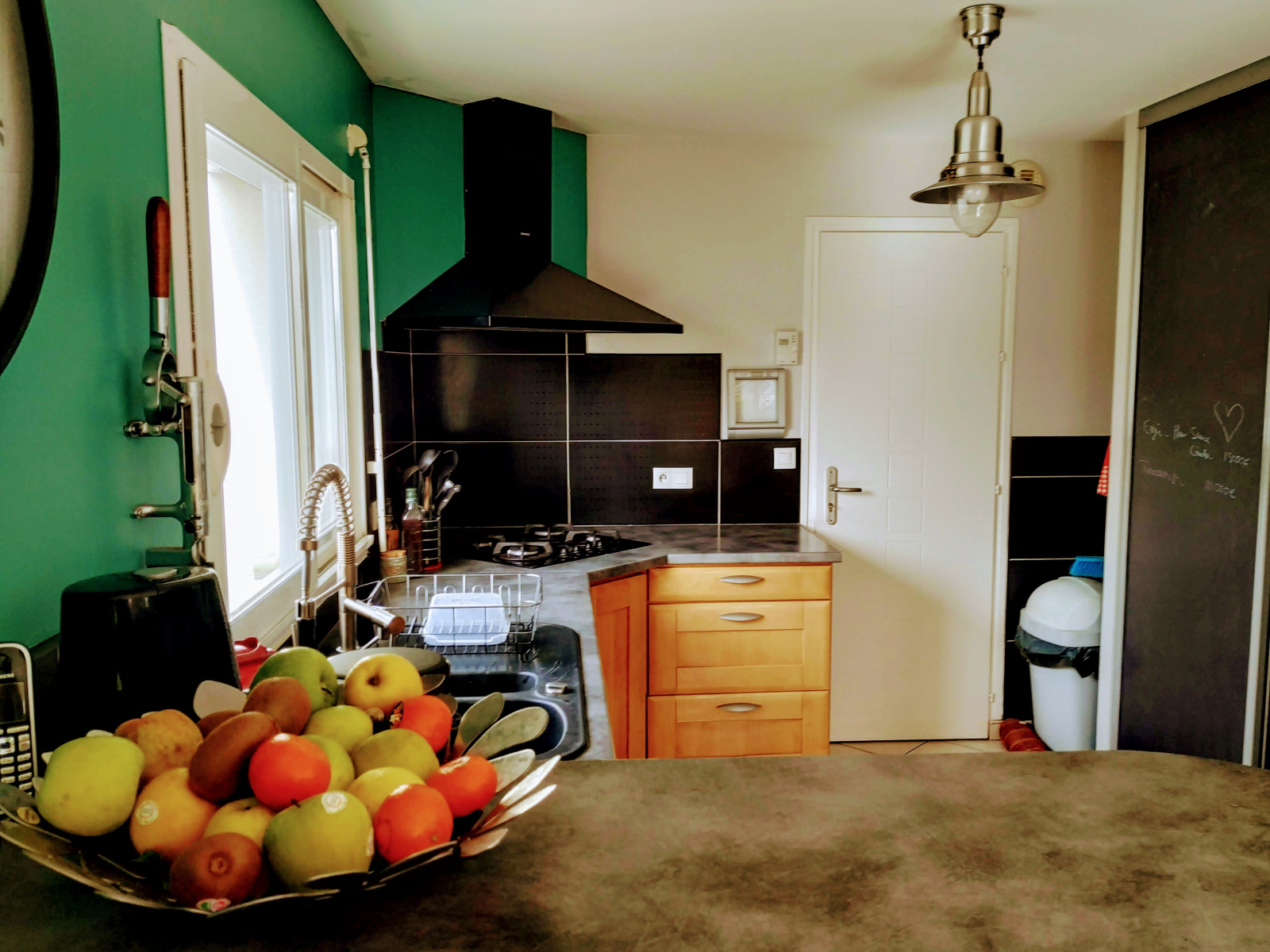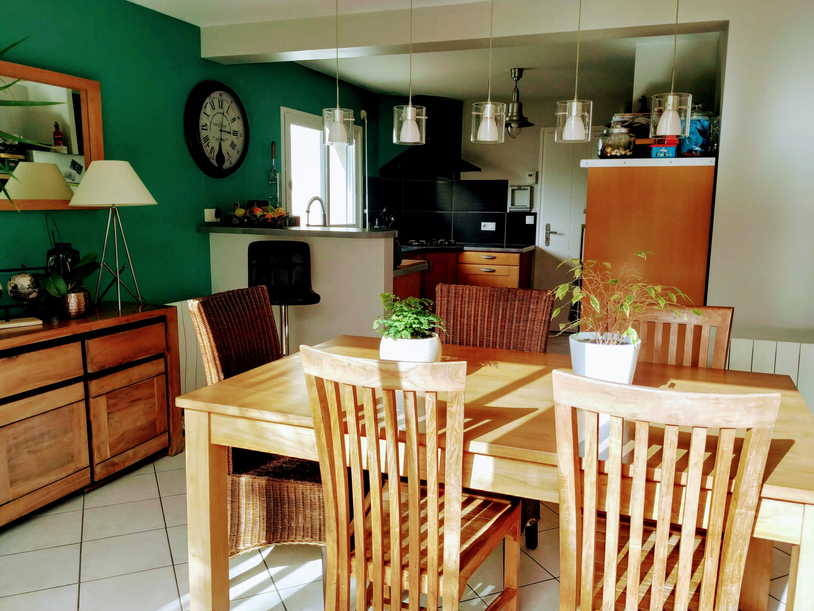 Construite en 2008 sur un beau terrain de 640m², cette maison familiale dispose en son rez-de-chaussée d'une entrée avec placard, d'un salon/séjour d'environ 33m² équipé d'un poêle à bois et s'ouvrant sur une belle terrasse exposée au Sud avec store électrique, d'une cuisine ouverte aménagée et équipée, d'une chambre avec une salle d'eau, et d'un WC.