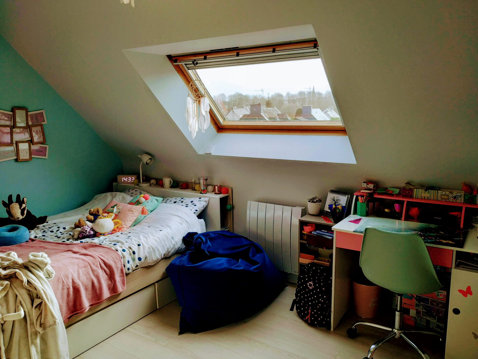 Chambre gagnée au dessus du garage, cette pièces dispose de placards sous rampants et est parfaitement isolée. Surface utile au sol : 22,68m2